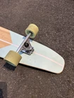 Cool Light Blue Longboard with a kick tail deck scratches on the top and bit of wear on wheels but never used more than 10 times