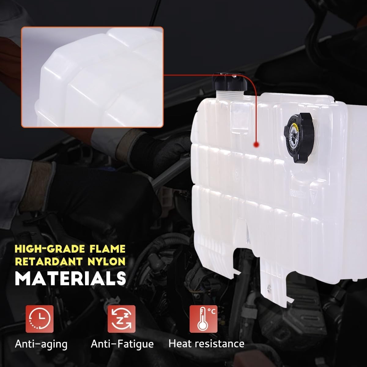 Coolant Reservoir Tank Fits Kenworth T660 T800 W900 T700 T2000 Peterbilt 388 389 348 365 367 377 382 384 385 386 [with Cap] Replacement Semi Trucks Engine Coolant Tank Description: 【SUITABLE VEHICLE】Reservoir tank for 2008-2015 Kenworth T600 Peterbilt 388, 2008-2017 Kenworth T660 T800 W900 Peterbilt 382 389, 2010-2018 Peterbilt 348, 2008-2018 Peterbilt 365 367, 2008-2014 Peterbilt 377 385, 2008-2016 Peterbilt 384 386. Please confirm your vehicle model before purchasing 【PRODUCT FUNCTION】Coolant reservoir tank are used to store engine coolant, which plays a role in keeping the engine temperature stable in the truck. The coolant flows through the engine through the circulation system, absorbs the heat generated by the engine, and then returns to the coolant storage tank for cooling. This ensures that the engine operates within the proper temperature range, prevents overheating or undercooling, protects the engine from damage, and increases the efficiency of the engine 【RELIABLE QUALITY】Coolant reservoir tank is made of high-grade flame retardant nylon, which can withstand excessive heat and vibration, and stand the test of time to reduce maintenance costs. Coolant reservoir tank's excellent sealing and sensitive coolant level sensor keep you informed of your coolant level for optimal operation 【SIMPLE INSTALLATION】A direct replacement for the reliable Kenworth Coolant reservoir tank part, the coolant reservoir can be easily located in the engine compartment, installed and connected to the radiator without drilling or cutting. A common problem with coolant tanks is leaks, which can cause the engine to overheat. Safely turn off the engine to allow the temperature to drop, then open the radiator cap or coolant tank to safely reduce and release the pressure Compatible with Vehicle Type Truck Fuel Type Diesel, Gasoline Product Grade Replacement Part Fit Type Vehicle Specific Automotive Fit Type Vehicle Specific Fit