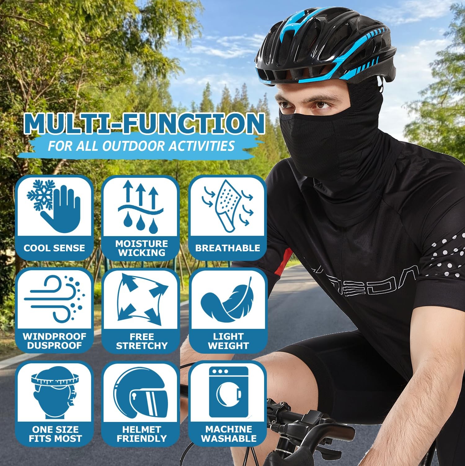 These cooling balaclavas are a summer game-changer! Super lightweight and breathable, they keep my face protected from sun, wind, and dust without overheating. The stretchy material fits comfortably, and the moisture-wicking fabric feels amazing during intense activities like biking or hiking. Love that they come in a 2-pack—perfect for switching out during long adventures. Super versatile for sports or everyday wear!