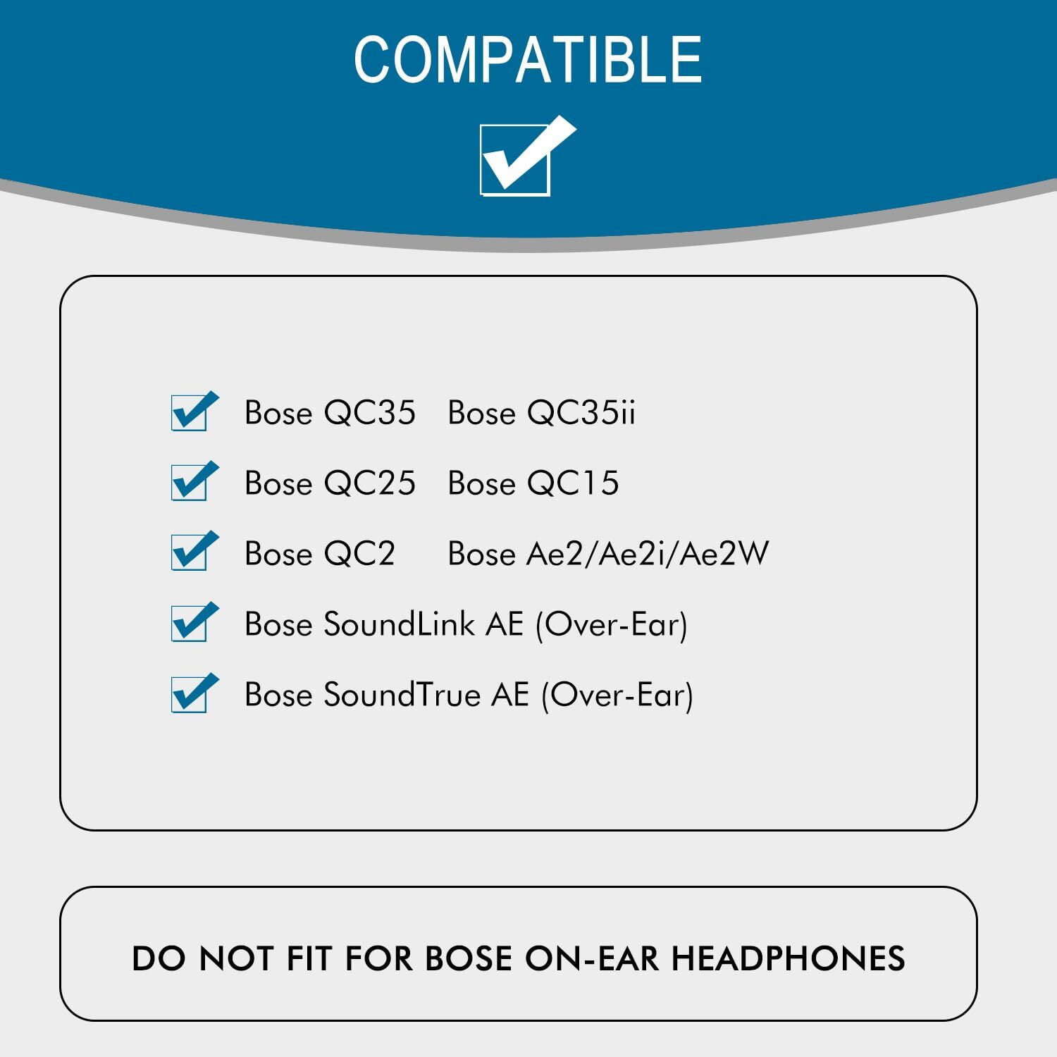 Suitable with:Replacement Ear pads Fit perfectly on QuietComfort 35 & 35ii, Quiet Comfort 2, QC25, QC15, AE2, AE2i, AE2w, SoundTrue, and SoundLink Bose headphone models. Get the perfect fit with our ear pads upgrade. Cooler&Softer:We used soft ice silk fabric in the top layer, more breathable and durable than leather meterials.Keep your ears cool during hot summer days with our earpads and keep you comfortable during long listening sessions. Enhance Noise Blocking:Our ear cushion replacement constructed of superior grade memory foam, this Bose earphone replacement set insulates your ears with a perfect fit,enhance noise blocking so nothing but the purest sound reaches your ear. Unmatched Durability: The seams of the Bose QC35 replacement ear pads are glued and reinforced with stitches to prevent cracking and prolong service life. Get unmatched durability and longevity with our ear cushion upgrade. Easy to Install:Replace the missing or damaged QC35 headphones ear cushions with a new pair of ear cushions. This Bose QC35 ear pads is not only easy to install, but also forms an important acoustic seal, which brings you more quietness.