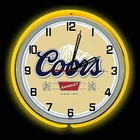 A High-Quality Retro Style Double Neon Clock. Dimensions: 18.75” diameter x 5.5” deep. Molded resin housing with high polished chrome finish. Two hand blown real glass neon rings. One Color neon on the outside to match with the theme color One Bright White neon on the inside to illuminate the clock face & time High-Grade neon power supplies for long-lasting neon life. High-Precision Quartz Clock with Sweep Technology (No Tick-Tock noise. Smooth, 100% Quiet). Protective glass lens with silk-screen printed numbers for easy reading. Classic pull-chain neon lights on/off switch. Neon lights powered by UL listed A/C adapter (included). Clock requires one AA battery (not included). Ready to hang in any Garage, Bar, Diner, Game Room, Workshop or Man Cave! FREE SHIPPING TO THE USA LOWER 48 ONLY.