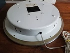 Coor, Light Wall Hanging Battery Operated Lighted Clock, approximately 15.75" wide, 3.25" tall, has a few dents, scratches & missing paint, requires 1 AA battery not included, as pictured no returns. Shipped USPS