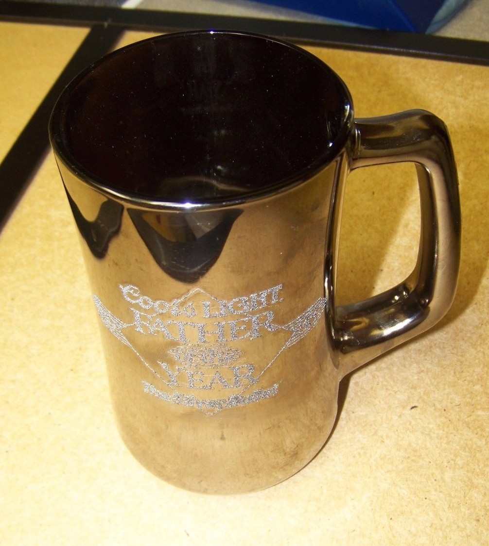 Coors Light Father of the Year The Silver Bullet mug stein tankard glass 1988 This drinkware measures about 5.5" tall, about 3.1" diameter at the top. Alone, the weight is 1.5 pounds. Excellent to very good condition, no chips or cracks. Has some small nicks, marks, scratches in the silver coating, most particularly around the bottom where the silver coloring ends. The flat bottom is clear, not colored. The words and design are raised, powder type on the surface, and it appears that light shining into the mug highlights the design against the silver coloring of the glassware. There is a little unevenness, small pin points of lighter coloring, or more light, scattered across the design. Don't forget to click on my "Stores" link, next to my eBay name, to see other items I currently have listed for sale, or you can copy and paste this address into your browser: stores.ebay.com/highcountrycollectibles SHIPPING INFORMATION Shipping to U.S. addresses is FREE! PAYMENT INFORMATION For fastest service, use the PAYPAL link and you can pay immediately. SALES TAX INFORMATION COLORADO RESIDENTS ONLY (outside of Denver metro area) add 2.9% state sales tax , DENVER METRO residents add 4.1% sales tax. Thanks and good luck! HIGH COUNTRY COLLECTIBLES Since 1989 – A LEADER IN THE DENVER SPORTS MEMORABILIA MARKET. Check out my other auctions and listings, and keep an eye out for the different, unusual, and EXCLUSIVE items available nowhere else but from High Country Collectibles.