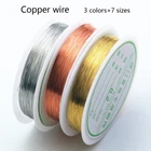 Product Name: DIY Copper Wire Product Category: Wire Color: Gold, Silver, Copper Red Material: Copper Dimensions: Spool Diameter 6.7cm, Height 1.5cm Length: 0.2mm Approx. 20m /Roll 0.3mm Approx. 17m /Roll 0.4mm Approx. 10m /Roll 0.5mm Approx. 7m /Roll 0.6mm Approx. 5m /Roll 0.8mm Approx. 2m /Roll 1mm Approx. 1.5m /Roll Packing: Opp Bag Package Include: Copper Wire X 1 Roll