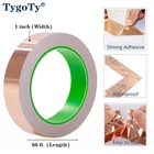 Copper Foil Self-Adhesive Tape 1inch X 66 FT 100% Pure copper Product Details Product Dimensions : 4.29 x 4.29 x 0.98 inches; 5.92 ounces Item model number : copper tape 01 Manufacturer : TygoTy Country of Origin : China Brand: TygoTy Color: copper Material: Pure copper Number of Items: 1 Special Feature: Double-sided Conductive,High conductivity, Strong adhesion. [DOUBLE SIDES WITH HIGH CONDUCTIVE] This copper foil tape is made of high quality conductive adhesive and pure copper material.It means both sides of this tape will carry current so whether it's soldering, grounding or minor repairs with highly conductive and low resistance. [EMI & RFI SHIELDING] Based on the excellent conductivity of our copper foil tape, it effectively prevents the interference of EMI & RFI on the audio signal, ensures the stability of the guitar in various environments, and improves the clarity of the sound quality. [EXCELLENT FOR WELDING STAINED GLASS] Because of the excellent conductivity and surface of our tape, it greatly improves the welding efficiency and quality of stainded glass. [GARDEN HELPER] Wrap copper tape around the flower pot, thus protecting the plants. [APPLICATION] Ideal for EMI Shielding, Guitar Cavity, stained glass supplie, Paper circuits, Electrical Conductive for Soldering, transformer, mobile phone, computer, PDA, PDP, and LCD monitor, PC, copier etc