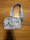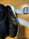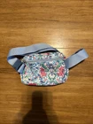 This Vera Bradley Coral Seas Crossbody Nylon Belt Bag is a medium-sized rectangular bag with a blue crossbody strap and gold hardware accents. The exterior is made of multicolor nylon with buckle and strap accents, featuring a zip closure and outer pockets. The interior lining is black and includes inner dividers and pockets for organization. Lightweight and packable, this versatile bag is perfect for travel or casual use, offering adjustable straps and a zip-around design for security. Personalization is not available for this stylish and functional crossbody bag.
