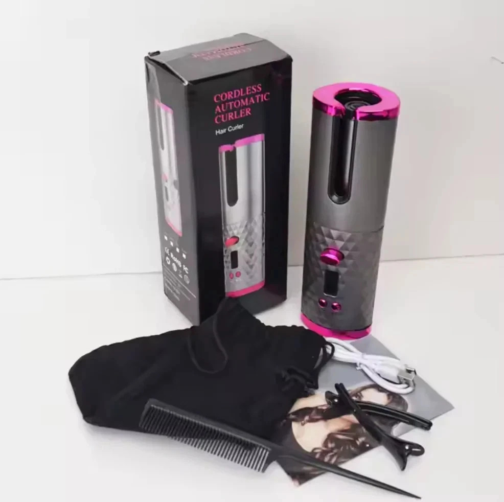 Cordless Auto Hair Curler Ceramic Rotating Iron 6 Temps Rechargeable.