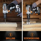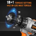 Cordless Drill, 3/8" Impact Drill Driver Set with 18+1 Keyless Chuck, 442 In-lbs Torque, 2 Variable Speeds, 44 pcs Accessories and Tool Bag High Performance: The clutch equipped with 18+1 torque setting and 442 In-lbs (50N.m), which provides precise control for driving in/out screws to prevent stripping, and drilling into wood, ceramics, plastics, and even metal with ease Efficient Working: A flexible shaft could be used in some places where driver bits are hard to reach. Built-In LED Light will increase your working efficiency and provide safety under dark environment Premium Accessories for your One-Stop Shopping: 44pcs accessories and 1 carry bag for convenient storage: 32 pcs 1 inch screwdriver bits, 10 pcs drill bits, 1 pc flexible shaft, 1 pc magnetic bit hodler Wide Applications: Our drill set euqipped with 2 modes and 2 adjustable speeds, which is ideal for hanging pictures, assembling or repairing furniture, tightening screws and many other DIY and craft projects Safe & Lightweight: The rubber-covered handle design provides a comfortable grip for being breezily operated in one hand and minimize fatigue in most daily screwing and drilling tasks Shipping We offer FREE shipping on all orders! We ship within Three business days of payment, usually sooner. We use a selection of shipping services such as UPS, FedEx, USPS etc. We only ship to the lower 48 states, no APO/FPO addresses or PO Boxes allowed. Local pickups and combined shipping options are not provided at this time. Return You can return a product for up to 30 days from the date you purchased it. Any product you return must be in the same condition you received it and in the original packaging. Please keep the receipt. Payment We accept payment by any of the following methods: PayPal Please pay as soon as possible after winning an auction, as that will allow us to post your item to you sooner! Feedback Customer satisfaction is very important to us. If you have any problem with your order, please contact us and we will do our best to make you satisfied. Contact Us If you have any queries, please contact us via ebay. We usually respond within 24 hours on weekdays. Please visit our eBay store to check out other items for sale! Thank you for shopping at our store.