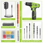 High-Performance Power Drill Set: FADAKWALT cordless drill with superior motor, 180 in-lbs (19 N.m) of max torque is perfect for drilling wood, metal, plastics, and all screw driving tasks at home; Precise control settings prevent stripping 21+1 Position Clutch: 21+1 torque settings (0-650 RPM ) of power drill can provide more precise torque or speed adjustment as required, which helps to prevent sinking a screw too deep, stripping out the head of a screw or even breaking a screw shaft Ergonomic Design: Compact and lightweight, with a superior motor, minimizes fatigue in most daily screwing and drilling tasks; The rubber grip ensures comfort for one-handed operation; The LED light and electric brake ensure precise work in dark areas Package List: You will get, 1 x Cordless Drill ,1 x Charger,1 x Magnetic Flexible Shaft, 1 x Extension Bar for Sticking on Fastener,3 x Wood Drill Bits,3 x Masonry Drill Bits,10 x 25 mm screwdriver bits, 1 x Screw anchor set Customer Service: If your Cordless Power Drill has quality problems or have any questions, please feel free to contact with us, we are always here Product Description Introduction to Fadakwalt Cordless Drills in Six Aspects 21+1 Torque Settings The Fadakwalt Cordless Drill comes with an impact drilling function, making it effortless for you to penetrate tough materials such as concrete and wood. Additionally, equipped with 21+1 torque settings, this electric drill is capable of handling any DIY project with ease and efficiency. Forward and Reverse switch The Fadakwalt Cordless Drill features a user-friendly switch that allows you to easily switch between forward and reverse rotation by simply moving the lever to the left or right. Moreover, a convenient trigger lock can be activated by moving the lever to the center off position, which ensures safety and prevents accidental starts. 3/8'' Keyless Metal Chuck The Fadakwalt Cordless Drill is equipped with a 3/8-inch keyless chuck and an automatic spindle lock, which enables quick and easy accessory changes. With this user-friendly design, you can effortlessly swap out different accessories and improve your work efficiency. Ergonomic Design The Fadakwalt Cordless Drill's small and lightweight profile allows for ease of use in tight areas, while the soft-grip handle ensures a more comfortable user experience Adjustable Speed Switch The Fadakwalt Cordless Drill's variable speed trigger enables you to adjust the speed to suit the task. User-Replaceable Battery The Fadakwalt Cordless Drill's users can replace and swap batteries with ease, and detach the battery quickly from the drill with minimal effort. Instructions for Battery Charging Battery Charging Interface Battery Charging Battery Fully Charged Applications of FadakWalt Cordless Drill Set