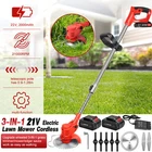 Descriptions: 【POWERFUL ELECTRIC WEED EATER CORDLESS】 【3-IN-1 ELECTRIC GRASS CUTTER】 【ADJUSTABLE DESIGN& 90°HEAD DESIGN】 Specification: Motor: 800W No load speed: 8500 RPM Battery: 21V 2000 mAh Lithium Battery * 2 Charging time: around 2-3 hours/ per battery No loading time:120-150mins Working cutting time: 30 to 60 minutes Package List: 1 * cordless grass trimmer 2 * stainless steel blades 1 * 6 inch alloy saw blade 5 * plastic blades 2 * Batteries 1 * battery charger 1 * small rotating wrenches 1 * manual Electric Lawn Edger Cordless Weed Grass Trimmer Cutter Eater w/ 2 Battery USA D escriptions: 【 POWERFUL ELECTRIC WEED EATER CORDLESS】 The stringless electric weed eater battery powered , featured with grass trimming & bush trimmer & lawn edger function. easy for different cutting jobs, not limited by wires, you can mow anywhere. Includes 2pcs 2000mAh and 800W high-power pure copper motor, 8500 RPM engine speed.Detachable wheels for more functionality when gardening! improve work efficiency. 【 3-IN-1 ELECTRIC GRASS CUTTER】 The electric weed trimmer with 3 types of blades: plastic blades for mowing delicate grass, Stainless steel metal blades are well for weeds small shrubs pruning; 40 tooth alloy saw blades are great for cutting thicker shrub, branches, sapling. Ideal for trimming around yards and bushes, lots, flower beds, walkways, patios.(To avoid damage to the blade, please choose the correct blade when weeding) 【 ADJUSTABLE DESIGN& 90°HEAD DESIGN】 The wcordless weed wackeris equipped with an adjustable rod, which can be adjusted freely from 35 to 50 inches.90 degrees adjustable grass trimmer can rotate into different positions, which helps you slope sections of the lawn and get into hard-to-reach corners with ease,Get going right away on yard work, lawn care, and other around the house projects. Specification : Motor: 1000W No load speed: 18000 RPM Battery: 21V 2000 mAh Lithium Battery * 2 Charging time: around 2-3 hours/ per battery No loading time:120-150mins Working cutting time: 30 to 60 minutes Package List: 1 * cordless grass trimmer 2 * stainless steel blades 1 * 6 inch alloy saw blade 5 * plastic blades 2 * Batteries 1 * battery charger 1 * small rotating wrenches 1 * manual Payment Shipping Return Contact us About us Payment 1.Paypal, Credit Card, G Pay etc, many payment way is accepted. 2.Please be sure your shipping address is correct before make a payment. Shipping 1.We are shipping from multiple warehouses (Houston, Texas/ Corona, California) , please note before placing an order 2.We will ship out the item within 1-3 business days after comfirming the payment, appreciate your patience. 3.If the items are broken on the way( we will check the orders clearly before we sent them ),please contact us in 3 days you received it. We will send you a new one or refund your payment. Return 1.We stand behind every buyer.Items can be returned for exchange or refund within 30 days. 2.Please contact us when you have any confusion of our item, we will solve the trouble for you as soon as possible. Contact us 1.This is professional Seller.We will reply your message within 24 hours. 2.Please contact us whenever you have any question about the item. We will deal with it as soon as possible. 3. If you are unhappy with the item or our service,please Contact Us before leave feedback,just give me a chance,thank you! About us 1. Unless specified otherwise, all our products are IN STOCK and are shipped from Local warehouse - Not Overseas! 2. We provide a 30 day Satisfaction Guarantee or your money back (provided items are in the same new and resaleable condition.) 3. We have a PayPal Verified Business Account, please buy with Confidence! 4. Every item will be tesrted before send.We know our products well and if we don't have the answers we will do our best to find them for you! 5. Our friendly team look forward to serving you! Your satisfaction is our No.1 Priority We will do our best to satisfacy you.
