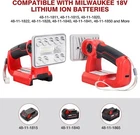 Cordless LED Work Light for Milwaukee Lithium Ion Batteries M18, 9W 1000LM Handheld Flashlight Jobsite Light Rechargeable Outdoor Light with 5V 2.1A USB, 90 Degree Pivoting Head Work Light Rechargeable For Milwaukee M18 for Milwaukee Lamps Outdoor LED Light LED WORK LIGHT For Milwaukee Ship from US local warehouse Ship within 24 hours, fast delivery 100% Professional technical inspection before delivery Ship with traceable tracking number Cordless LED Work Light for Milwaukee Lithium Ion Batteries M18, 9W 1000LM Handheld Flashlight Jobsite Light Rechargeable Outdoor Light with 5V 2.1A USB, 90 Degree Pivoting Head Features: 【LED WORK LIGHT】Rechargeable work light for Milwaukee 18v lithium ion batteries, well compatible with 48-11-1811 48-11-1840 48-11-1850 2620 2630 48-11-1811 48-11-1815, 48-11-1820, 48-11- 1822, 48-11-1828, 48-11-1840(BATTERY NOT INCLUDED). Equipped with 5V/2.1A USB port, your phone, tablet and other electronic devices can be charged by Hiesuan Replacement Cordless LED Work Light, just like a battery adapter. 【FLASHLIGHT WITH 3 MODE SETTINGS】LED flashlight with 9W 1000LM bright light used for 3 modes. To activate the cordless work light, short press the on/off button, the light turns on. The 2nd time, the brightness of the light is high light mode. The 3rd time, light flashing. To turn off the light, long press the switch for more than 1 second. 【90 DEGREE PIVOTING HEAD】90-degree pivoting head provides versatility for lighting work surfaces. Light to be projected in multiple directions. Wireless led work ligth with a portable wrist strap makes it easy to carry. Perfect for outdoor camping, hiking, fishing, hunting, power failured etc. An ideal tool for your work and life. 【SAFE & RELIABLE】18v Lithium ion led work light has been certified to CE & FCC and offers the super safety guarantee to against over-load, over-current, over-heat and low-voltage for you and your devices. 【CUSTOMER SUPPORT】60 Days Money Back and Lifetime Warranty. If you have any questions, please feel free to contact us, we will try our best to promise you an enjoyable shopping experience. Technical Details Manufacturer:Jhjqzcyg Item Weight: 14.1 ounces Product Dimensions: 8.46 x 3.94 x 3.74 inches Size: 3" 9W 1000LM-vertical Power Source: Battery-Powered Voltage: 18 Volts Wattage: 9 watts Maximum Power: 9 watts Item Package Quantity: 1 Type of Bulb: LED Special Features: Providing 5v 2.1a usb port, can charge your electric devices, such as mobile phones, digital audio devices, tablet PC, USB fans, digital cameras and small electronic devices. CORDLESS WORK LIGHT 9W 1000 LUMENS LITHIUM-ION LED OUTDOOR LIGHT(BATTERY NOT INCLUDED) 1. Battery Compatibility: for Milwaukee 14.4v-18v lithium ion batteries, well compatible with m18 series 48-11-1811 48-11-1840 48-11-1850 2620 2630 48-11-1811 48-11-1815, 48-11-1820, 48-11- 1822, 48-11-1828, 48-11-1840 and More. 2.Specification: Material: Plastic & Zinc Alloy Rated Voltage V = 18V Lighting Time :135min/Ah(Highlight mode) LED Beads: 18 pcs Power: 9W Luminous flux LM:1000 USB Output: 5V 2.1A(for charging your mobile devices) FLASHLIGHT WITH 3 MODE SETTINGS, SATISFY YOUR NEEDS 3 Mode Settings: Press switch button once for 50% brightness Press twice for 100% brightness Press the third time for light flashing LONG PRESS TO TURN OFF THE LIGHT IN ANY MODE RECHARGEABLE WORK LIGHT FOR FOR MILWAUKEE IN DETAIL SHOW WIDE RANGE OF USAGE SCENARIOS FOR FLASHLIGHT FOR MILWAUKEE 18V M18 LI-ION BATTERY Perfect for outdoor camping, hiking, fishing, hunting, power failured etc. Equipped with over-load, over-current, over-heat and low-voltage protection. Payment Shipping Policy Returns & Warranty About us Contact us Payment *All payments must be prepaid. *We only accept payment via Paypal. Please kindly check if you can do the payment via PayPal before placing an order. Shipping Policy *We are not responsible for undeliverable address. We reserve the right to charge the shipping fee again for returned items due to wrong address. *Items are generally shipped out the next business day after your payment has been cleared (Sat. & Sun. excluded.) *Orders from the United States will all be shipped out via UPS/USPS. The shipment usually takes 3-5 business days( Saturday and Sunday excluded), if you need the item urgently, please contact us for detail before purchase. *Local pick up is not available. *NO International Shipping, including Canada. Returns & Warranty *This product has a 5-year warranty. *Our warranty does not extended to any products that are physically damaged or that are not under normal operating conditions as a result of misuse or improper installation on the buyer/user's part. *For all returned products, buyers MUST contact us for the returning address. *In all cases, buyers pay shipping fees at their own cost to return products for exchange or refund. We will be responsible for the postage of replacements. Refund will be made upon receipt of the returned item. About us *We focus on designing and manufacturing varieties of Power Tool batteries with high quality and competitive price.We will do our best to serve you! Contact us *We have always been trying our best to provide the best service and reliable products for every customer. Please contact us via eBay message or email to resolve the issue before leaving negative feedback. *Any problems pls contact us at any time before leaving a negative/neutral feedback. Many thanks to you.
