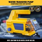 About this item Cordless Dual-purpose Pump: This transfer pump is compatible with 20V battery(Battery and Charger NOT Included), can transfer water or oil(Note: Do not mix use). Enjoy freedom from external power sources, perfect for outdoor or remote place use Superior Transfer Capability: This oil change pump is equipped with a high-speed 5000 RPM motor, delivering a flow rate of up to 300 GPH, a suction height of up to 5', and a head height of 25'. Ideal for various diesel transfer applications Self-Priming Transfer Pump: The mini utility transfer pump primes itself for quick use and efficiently moves diesel at up to 300 gallons per hour. Pump only oil viscosity ≤ISOVG32 (35mm²/S ), such as oil, hydraulic oil, gear oil, etc Portable & Easy to Use: This multi-use transfer pump has a unique portable handle. Features a one-touch switch for effortless use; simply plug in the battery and hose to get started. The interface type of the pump's inlet and outlet are 3/4" NH Low Voltage Protection: The handheld water pump extractor comes with Low voltage protection function, helping to protect both your battery and the service time of the transfer pump Wide Application: The electric transfer pump efficiently transfers water or oils like diesel, hydraulic oil, and kerosene. It's widely applied in garden ponds, diesel vehicles, excavators, tractors and oil tanks