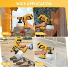 Introducing our Cordless Paint Sprayer, a versatile and convenient tool designed to make your painting projects a breeze. This sprayer is compatible with DE-WALT/MILWAUKEE batteries, allowing you to use it both indoors and outdoors without worrying about cord length or socket safety. With its wireless functionality, you can easily move around and use it wherever you need. Equipped with four different spray nozzles, this paint sprayer enables you to pair it with various types of paints for different applications. Additionally, a professional user manual is provided, making it effortless for users to obtain the correct dilution ratios. Featuring three spraying modes, this sprayer caters to different angles and requirements, giving you the flexibility to achieve professional-quality results at home. Its user-friendly design makes it simple and worry-free to operate, even for beginners. To enhance convenience, we have added a hanging hook design, allowing for easy storage when not in use. Our aim is to provide you with a seamless and enjoyable shopping experience, both through our product and our customer service. If you have any questions or concerns, our team is committed to addressing them with a positive attitude and working together to overcome any difficulties. We hope that our Cordless Paint Sprayer will bring you joy and ease as you embark on your painting ventures. 【Cordless Paint Sprayer】Compatible with Dewalt 20V MAX batteries and other Cordless Tool Battery Packs with the similar port(Battery NOT Included). The portable desgin without troublesome of cords and outlets, you can enjoy the convenience of spraying operation everywhere indoor and outdoor. 【Adjustable Spray Nozzles】:This electric spray paint machine comes with 4 nozzles, measuring 3.0 mm, 2.0 mm, 1.5 mm, and 1.0 mm.Easily switch between different spray modes to accommodate various materials and surfaces,ensuring optimal coverage and finish with every use.Made of pure copper, these nozzles not only prevent paint corrosion but also extend the lifespan of the spray machine. 【3 Spray Patterns】cordless paint sprayer equipped with 3 adjustable spray patterns to meet various spraying scenarios and materials. Such as garden,fence,furniture,walls,doors,windows,household appliances,auto parts spraying,furniture and wood product renovations,etc. 【Easy to Use & Clean】 Simple installation for everyone. It's easy to clean by soaking the parts into the water(paint thinner) and using the brush and needle to clean the left painting. Note:The Motor device is forbidden to use water clean. 【What You Will Get】1X Paint Sprayer, 4X Nozzles, 5 X Paint Filters, 1X Filter Funnel, 1X Nozzle Cleaning Needle, 1X Cleaning Brush,1X User Manual. If you have any questions on your product or order,please contact us via your order.