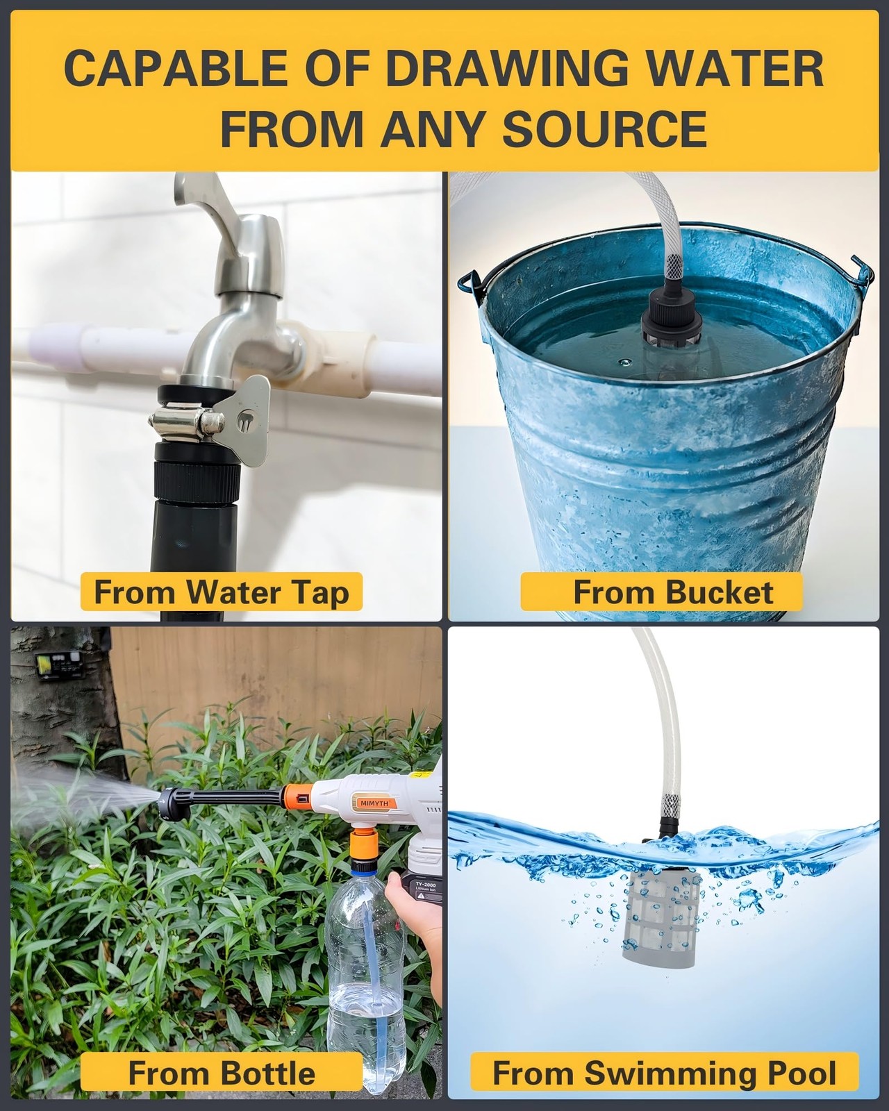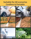 cordless pressure washer portable pressure washer cordless power washer battery powered pressure washer portable pressure washer cordless indoor pressure washer battery pressure washer power stream pressure washer cordless pressure washers portable cordless pressure washer cordless pressure washer battery powered handheld pressure washer car pressure washer battery powered power washer pressure washer battery powered hidrolavadora portatil pressure washer cordless portable power washer cordless battery operated power washer hand held pressure washer hand held power washer cordless portable pressure washer battery power washer cordless car detailing pressure washer cordless power washer portable small pressure washer portable portable water tank with hose compact pressure washer mini power washer power washer portable small power washer portable pressure washer small Powerful Portable Cordless Pressure Washer: With a brushless copper motor delivers 1200 PSI, battery powered cordless power washer can tackle even the toughest dirt with ease. The weighted filter & garden-hose/tap adapters can draw water from any sources. Portable yet powerful, with quick-connects and a soft case, battery operated pressure washer sets up fast, goes wherever needed and gets jobs done easily. Our battery powered cordless pressure washer is great for any tasks. StormForce 1200 PSI Brushless Motor: Driven by an upgraded 3820 pure-copper brushless motor, this 400 W cordless car wash portable pressure washer delivers 1200 PSI —over ten times the pressure of a standard hose. The integrated LCD control panel of our battery pressure washer cordless offers three precisely calibrated modes, letting you dial in gentle rinse or deep-scrub force on demand, dealing with everything from windows, cars, to bricks. 4.0 Ah 21 V high-performance Battery: The high-capacity battery pack in our portable pressure washer cordless pumps a steady 21 V for 30–40 min of uninterrupted wash time—plenty to soap, scrub and rinse an SUV or patio in one go. Smart Battery Management System of our handheld power washer keeps current stable, prevents heat build-up, and preserves battery life. A full recharge of our power stream pressure washer battery takes just 4 hours. Upgraded 6-in-1 Nozzle + Foam Cannon: Our reinforced 6-in-1 head of our portable battery pressure washer snaps between 0°, 15°, 25°, 40°, jet and shower for perfect coverage. Attach the foam cannon of our mini pressure washer to spray dense foam on dirt, then switch back 6-in-1 nozzle for our battery power washer to rinse clean. Whether cleaning dirt off SUVs, washing bikes, shining windows, scrubbing walls, patios or driveways, this combo tackles every job and strips away stubborn grime. Reach-Anywhere 23-ft Sturdy Hose: Allowing you to clean much wider areas, our 23-ft sturdy hose of our pressure cleaner outranges the standard 16-ft lines shipped with rival washers, so you can power wash and blast patios, cars, and upper windows without shifting the base. Made from thick, high-elastic polymer, it resists kinks and stays pliable in 124 °F heat, -4 °F cold, or pouring rain. All-season, all-weather, all-environment—an all-rounder you can trust. Draw Water Easily from Any Sources: Our water pressure washer comes with a weighted, intake filter that dives fast and screens grit, leaves and sand, pumping clean water straight from rivers, creeks, pools or a five-gallon bucket. When a faucet or garden hose is handy, clip on the included NPT, GHT or slip-on rubber collar in our car wash machine kit and snap into any garden hose or smooth outdoor tap in seconds. You’ll always find a water supply with accessories in our battery power washer. Lightweight Portable Yet Mighty: Lightweight yet mighty, our compact handheld pressure washer weighs under 4 lbs and is stored in a water-proof soft case—no bulky frame, no tangled electric cords. You can bring it everywhere—store it in the car trunk, keep it on hand for outdoor jobs, or pack it for the campsite, achieving both portable convenience and mighty power. With our detailed user manual guide, you could put everything together in few minutes and start washing already. What is included: Cordless High Pressure Washer, 4.0Ah Battery, Fast Charger, 6-in-1 Nozzle, Foam Pot, Stop Valve, 23FT Extended Extra-strong Hose, Hose Clip, NPT Garden Hose Adapter, GHT Garden Hose Adapter, Slip-on Rubber Faucet Connector, Weighted Filter, Bottle Connector, Bottle Straw, Storage Case, Detailed User Manual, 24-hour response cus-tomer service. Your Satisfaction, Our Commitment We stand by the quality of our small pressure washer with a comprehensive one year wa-rra-nty. Have questions or need assistance? We're here for you 24/7 and guarantee a professional response within 24 hours to address any concerns promptly and effectively. Your satisfaction for our car power washer is our top priority.