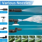 Get your outdoor cleaning tasks done with ease using this cordless portable high pressure spray water gun. This powerful motor gun offers a shooting range of 4-6m and can generate a maximum pressure of 725 psi, making it perfect for cleaning your car, garden, and outdoor areas. The gun comes with a 5-meter water inlet hose, on-board accessory storage, and a quick connect feature for added convenience. Other features of this high pressure water spray gun include a powerful motor, different water spray modes, a telescopic handle, and a 6 IN 1 adjustable nozzle. It has a compact design, is lightweight, and comes with a rechargeable battery that lasts up to 45 minutes. The gun also has a soap tank, water inlet filter, and is made of durable ABS, plastic, and PVC materials.