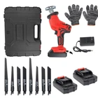 24V Cordless Reciprocating Saw + 2 Battery & Charger Recip Sabre Saw + 8 Blades [Full OF POWER] The cordless reciprocating saw is equipped with two 24V/2.0Ah lithium-ion batteries and a quick charger, so you can do your cutting work as you wish even when you are far away from the power outlet and power cord. [HIGH FREQUENCY RECIPROCATING] AUTOJARE reciprocating saw is equipped with enlarged switch with switch lock button, start switch, reciprocating stroke up to 28mm and speed up to 3200SPM, which can finish cutting safely and quickly. [SAW BLADE INSTALLATION] Reciprocating Saw Cordless Kit is designed with a high strength self-locking chuck, simply rotate the chuck, insert the saw blade and release, the saw blade will automatically tighten, simple and strong [COMPACT & CONVENIENT] The device is light, with the machine itself weighing only 5.7 pounds. Ergonomically designed and easy to operate, it can do the job with ease. [WIDELY USED] Cordless reciprocating saw with battery and charger, two equally configured saw blade sets, each containing three different types of wood saw blades (6TPI, 10TPI, 6TPI) and one metal saw blade (18TPI). Choose the appropriate size saw blade for cutting wood, metal, PVC pipe, etc. Specifications Type Reciprocating Saw Battery Type 2000mAh Lithium-Ion Battery Included YES (w/ battery & charger) Power Source Battery/Cordless Voltage 24 V No-Load Speed 0-3200 rpm Speed Mode Stepless speed change Max Cutting Thickness 150mm (woodplasticpipe) 200mm (metal) Stroke Length 16mm Charge Time 90 min Material ABS plastic + Metal Colour RED/BLACK Package included 1 x Cordless Reciprocating Saw 1 × Fast Charger 1 × Carrying Box 2 x 2000 mAh Lithium-Ion Battery 2 × 6"(150mm)x18TPI 2 × 6"(150mm)x10TPI 2 × 6"(150mm)x6TPI 2 × 8"(200mm)x6TPI 2 x Protective Gloves 1 x User Manua