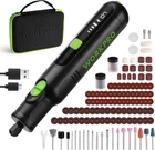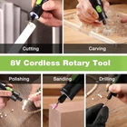 Versatile mini rotary tool: This high-performance, low-noise rotary tool comes with 117 accessories and LED light, making it ideal for home projects and crafts such as grinding, engraving, cutting, drilling, sanding, and polishing. LED Light design helps you enjoy enhanced visibility for precise work, ensuring impeccable results every time Variable Speed Adjustment: The multi-purpose rotary tool, featuring 6-speed settings for 5000/10000/15000/20000/25000/30000 RPM, is strong and steady. Whether it's delicate engraving or robust cutting, its adjustable speed range guarantees for project's demands Quick Type-C Charging: This cordless rotary tool kit is easy to use and powerful, equipped with Type-C charging and 2 rechargeable build-in batteries. Bid farewell to long down times - It charges quickly in just 1.5 - 2 hours, indicated by five lights turning white, and can last up to 200 minutes Compact & Lightweight: Compared to 4 V rotary tools, 8 V wireless rotary tool kit provides sufficient power to handle tasks of various intensities. Compared to the weight of 12 V rotary tools, our tool weighs only 0.5 pounds and measures 7.48 inches in length, making it your best choice. It also comes with a tool bag for easy carrying and convenient storage Auto-Locking Protection: Our mini cordless rotary tool improves greatly the efficiency of accessory replacement by the automatic locking design, only need to screw the shaft lock to replace accessories. This design enhances safety by securing the spindle during tool use, preventing accidental slipping or rotation Attention: 1. When turned off, the product automatically locks the shaft, causing a locking sound. This is normal and nothing to worry about. 2. Recharging per 3-6 months will prolong the life of the cordless rotary tool if it is not used often. 3. For safety, it is not supposed to use while charging Product Description AUTOMATIC SHAFT LOCKING DESGIN Compare with other mini rotary tool, the automatic shaft lock enables you effortless accessory replacement. UNIVERSAL USB-C CHARGING PORT It can be convenient to charge anywhere with the USB plot, like laptop, powerbank, car charger, etc. It's supported to charge with C-C cable. 1 Engraving 2 Cutting 3 Sanding 4 Polishing 5 Drilling 2 COLLET SIZES It includes 2.35mm and 3.2mm collet sizes, providing versatility and compatibility with various accessories for precise carving and grinding tasks. LED HEADLIGHT The LED light can provide bright illumination for precise work, even in dark or tight spaces. 6 SPEED SETTING It spins up to 30,000 RPM to give you plenty of power and control. EASY CARRY A portable carrying bag makes both the rotary tool and accessories convenient and easy to carry anywhere. Is it normal to hear an emergency shutdown sound when the power is turned off? Yes, it is normal and completely safe to hear that sound when the power is turned off. It’s the sound of the automatic spindle lock engaging. Can it cut metal? Yes, it can cut softer metal wires. It can also cut copper pipes with a 4mm wall thickness, and it needs to be done slowly.
