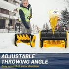 TRUE 40V HIGH POWERFUL SNOW BLOWER - Litekon 40V cordless snow blower is equipped with a powerful 40V brushless motor, powered by two 40V rechargeable lithium battery packs, can provides 150% more power than other 20V snow blowers. Super powerful can be used in heavy snow winter conditions, one of the most high power cordless snow shovel you ever need. EFFICIENT & EFFORTLESS SNOW REMOVAL - LITEKON cordless snow shovel is equipped with an ultra strong 40V BRUSHLESS motor. Easily clear snow up to 13 inches wide and 6 inches deep, and throw it up to 16.5 ft away. Say goodbye to the labor associated with traditional shoveling and make snow removal easy! 2 x 40V/4.0AH POWERFUL LONG LASTING BATTERY - Equipped with a powerful 40 Volt brushless motor and 2 packs of rechargeable 4.0 Ah lithium-ion battery pack, Litekon battery powered snow shovel has enough power can easily clear snow up to 13 inches wide with an optimal snow clearing depth of 6 inches, throw snow up to 16.5 feet, with a maximum runtime of 45 minutes. ERGONOMIC & LIGHTWEIGHT USER-FRIENDLY DESIGN - This cordless snow shovel is ergonomically designed. The shock-absorbing padded grip and auxiliary handle provide you with a more comfortable use, and the 56inches usage length allows you to remove snow without bending over. 7.5lbs lightweight and user-friendly design is suitable for the elderly and women, and increases the comfort level for long time use. LITEKON cordless snow shovel makes snow clearing easier than ever. ADJUSTABLE THROWIN GANGLE - Our cordless snow shovel feature easy-to-control mechanisms with 60° rotatable adjustable snow guide plate that give you more precise control over the direction of your snow plowing. Our electric battery-powered snow shovels require no complicated assembly. Simply turn the connector for easy disassembly and space-saving storage. EXCELLENT CUSTOMER SUPPORT - We have great confidence in our products. So cordless snow shovel is covered with 30 days of money back. Customer satisfaction is our top priority, and if you have any questions, please feel free to let us know. Product description The video showcases the product in use. The video guides you through product setup. The video compares multiple products. The video shows the product being unpacked. Litekon Snow Shovel Merchant Video 1 Width & Depth 2 Adjustable Handle 3 Adjustable Angle