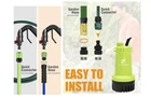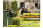 CORDLESS SUBMERSIBLE WATER PUMP: Our innovative 18V battery-powered pump can drain water directly from the water butt without a power cable, catering to your resource-saving garden watering needs. Compact pump size W: 3.3" x H: 7.1", Weight:1.5 Lbs. EFFICIENT DRAINAGE: The 90 W motor creates a Max. flow rate of 530 GPH and delivers water up to 65.5 FT, securing quick water extraction. The 3/4" outlet easily connects to sprinklers, sprayers and standard garden hose for versatile usage. RELIABLE OPERATION: This Rain barrel pump provides a water pressure of 2 bar and can be submerged in water up to 6-foot deep. Timer function with three settings: 5/10/15 min. The battery compartment is protected by a cover to prevent damage from water. SIMPLE MANUAL CONTROL: The pump will start running when powered on and will not shut off automatically. It can drain water down to 1". Built-in thermal overload protection prevents overheating damage, ensuring safe operation and long service life. EASY TO USE: Mount the pump on a wall or on the tank thanks to the included wall and tank attachments. The curved hose guide can be easily attached to the barrel edge and positioned as required. The removable strainer base serves to prevent clogs and enhance stability. EVERYTHING YOU NEED IN ONE KIT: Utility Pump, battery control unit, connecting hose 7.2-foot with hose guide and quick connector, tank attachment, wall attachment, 18V 4.0 Ah battery, charger, and 2 adapters.