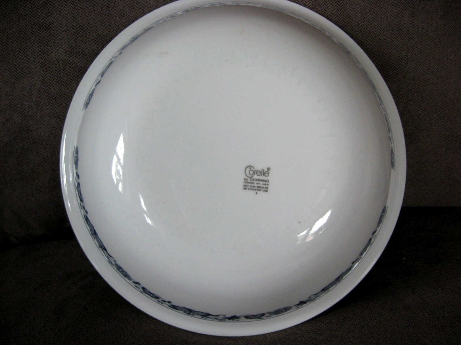 Brand:CorelleOccasion:All OccasionsSeller Notes:“Pre owned - NO marks, NO stains, NO pattern loss. Smooth edges. Clean & Shiny. ?used.”Pattern:Old Town BlueBackstamp:PrintedVintage:YesTheme:FlowerItem Height:3" at the outer rimOriginal/Licensed Reproduction:OriginalEra:Late 20th Century (1970-1999)Country/Region of Manufacture:United StatesStyle:ContemporaryFeatures:Microwave Safe, Break-ResistantOrigin:AmericaItem Weight:1 lb - unpackagedShape:RoundType:Vegetable serving bowlColor:WhiteFinish:GlossyProduction Technique:Corning Ware GlassItem Diameter:10 1/4”Material:Glass