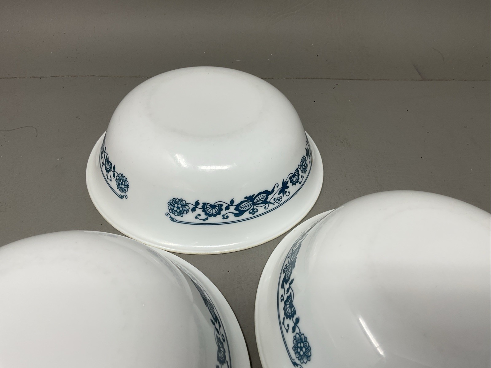 The Corelle Old Town Blue Onion set of 3 cereal bowls features a classic blue pattern on glass material. This bowl set is perfect for serving breakfast grains or snacks, adding a touch of vintage charm to your dining experience. With its durable construction and attractive design, these cereal bowls are a stylish addition to any kitchen table setting.