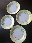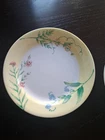 Corelle Sun Garden Dessert Salad Plates 8 Yellow border, three flowers, white center. One plate has pencil mark on border.