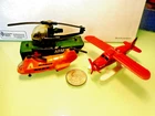 Here is a 1970's era CORGI,Jr of England U.S. ARMY Helicopter and a cargo container with a fold down ramp. Also by Corgi,Jr an orange AIRBUS Copter. Lastly a MATCHBOX Sea Plane with folding wings. Perhaps you would like to add this piece to your Corgi Jr collection. Thanks for looking !