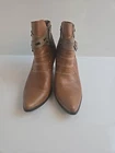 Step up your shoe game with these stunning Corkys ELITE Antelope Booties in a beautiful honey brown color. These ankle boots feature a pointed toe, mid heel with a cone style, and an adjustable strap for a comfortable fit. The booties are perfect for fall and winter and can be dressed up or down for a versatile look. The leather upper material is accented with stylish studded patches, giving the boots a unique and edgy touch. The Corkys ANTELOPE model is a must-have for any fashion-forward woman. Don't miss out on this opportunity to own a high-quality pair of boots from the Corkys product line.
