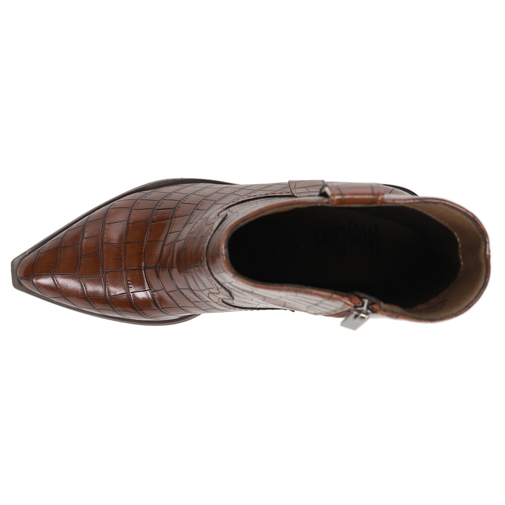 Rowdy Croc Embossed Snip Toe Cowboy Booties Product Details Leather upper Pull on entry with side zipper Rubber Sole 3 Inch Heel Snip toe Giddy on up and get these Cowboy booties. These Corkys Rowdy Western Boots are already one of our favorites this season. These western cowboy boots are designed with classic embossed, pull on style, snip pointed toe, thick 3 inch heel and a rubber sole. Additional Details Color: Brown Occasion: Casual Gender: Womens Age: Adult Brand: Corkys