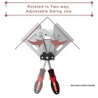 Trustworthy Quality: corner clamp is uniquely prepared with the aluminum alloy die-casting based construction, where high durability and well-built design are conveyed to ensure long-lasting use Clamping Range: Maximum clamping range is approx. 2.76in/70mm; jaw width: 3.74in/95mm; jaw depth: 1.4in/35mm, allowing different thicknesses of the wood block to be connected at the right angle. It can accommodate most large things including metal tubes, steel rods, wood, thick glass, and more Swing Jaw Design: The corner clamp's single-handle jaw can be rotated in -way, making clamping more convenient and holding workpieces precisely Ergonomic Design: Anti-skid handle is nicely covered with rubber to ensure users' comfort hands. Whether for professional use or DIY use, corner clamps for woodworking are absolutely useful tools to choose Versatile Use: 90 degree right angle clamp is perfect for welding, framing, drilling, doweling, woodworking, making cabinets, installing furniture, box and picture frames, etc