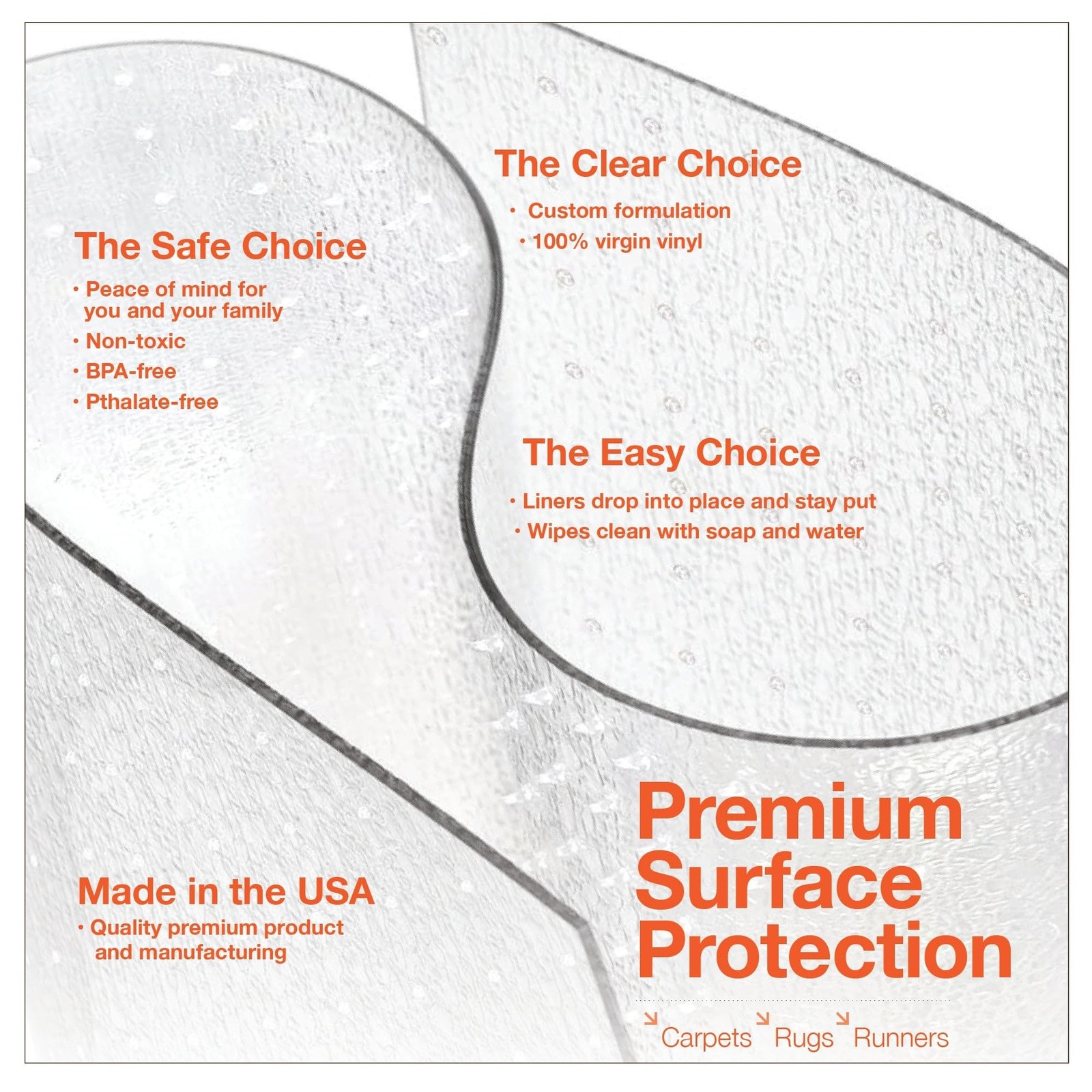 Clear Carpet Runner, USA Made, Safe, 24 x 36 Inch, 2mm Thick Cleated Vinyl, Clear Floor Runner Roll for Carpet Protection, Plastic Area Rug for Doorway Floor Product Details Size: 2' x 3' (Rectangular) Color: Cleated Riverstone Brand: ExactMade MPN: CP-01 UPC: 793945724130 EAN: 0793945724130 Product Dimensions: 36"L x 24"W Brand: ExactMade Material: Vinyl Size: 2' x 3' (Rectangular) Color: Cleated Riverstone Product Dimensions: 36"L x 24"W Brand: ExactMade Material: Vinyl Size: 2' x 3' (Rectangular) Color: Cleated Riverstone Item Weight: 3 Pounds Shape: Rectangular Fabric Type: 100% Vinyl Surface Recommendation: Carpet, Hard Floor Item Thickness: 0.08 Inches Product Care Instructions: Hand Wash Only UPC: 793945724130 Unit Count: 6.0 Square Feet Number of Items: 1 Item Weight: 3 pounds Manufacturer: ExactMade Item model number: CP-01 Date First Available: October 3, 2023 USA MADE, PREMIUM FLOOR PROTECTION - Made in America from the highest quality virgin vinyl. Our Clear Carpet Runner is durable, safe, 2mm thick cleated vinyl, formulated to provide superior protection for carpets and rugs. SUPERIOR CARPET SHIELDING - Protects carpeting from pet scratching, high foot traffic, wear, tear, and stain. Effectively prevents the entrapment of dirt, dust, and debris, keeping carpets clean and new. UNMATCHED CLARITY- Our Clear Carpet Runner blends into its environment, allowing for a full and unobstructed view of the carpet beneath. Fortified with optimized carpet grippers for reinforced security and exceptional traction. CLEANING & SAFETY- No special cleaner required. Simply hand wash with soap, wipe down with general purpose cleaner, or vacuum. Our Clear Carpet Runner is also BPA-Free and Phthalate-Free for maximum safety and peace of mind. 2 TYPES- Our Cleated Riverstone Carpet Runner protects carpeted surfaces with an elite grip and vivid transparency. Our Riverstone Hard Floor Runner protects hard floor surfaces while providing a versatile dual-textured finish.