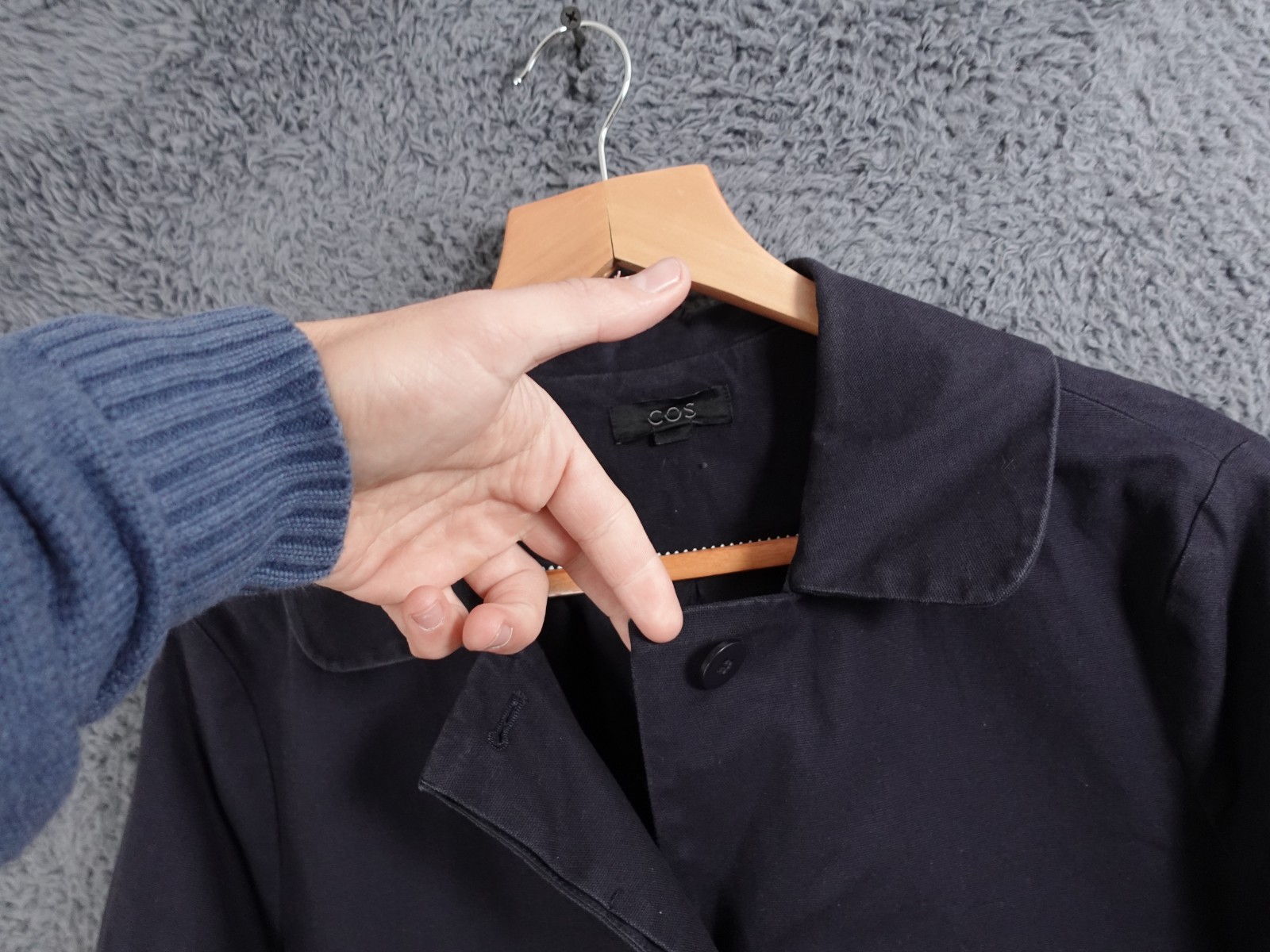Genuine COS Chore Jacket Chest Width (Pit-to-Pit): 22.5" Body Length (Shoulder to tail): 29.5" Size: EUR 40 / UK 12 Good used condition. Please note a mark and some fading as shown in the photos Please note that used items may have some pilling, wear and fading (especially around the collar and other seams). Any notable damage or excessive pilling/wear/fading will be noted. Items washed/cleaned in line with manufacturer guidelines. I will ship this item out via 2-3 Day Mail with a tracking number for confirmation I ship items out EVERY DAY so EXPECT a QUICK delivery! Please feel free to ask any questions you may have I answer most questions instantly!