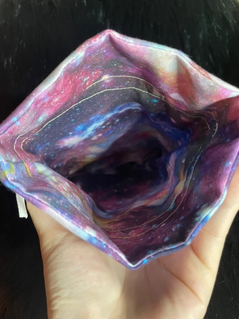 This product is a handmade tarot bag designed to hold tarot cards, oracle cards, pouches, runes, and Lenormand cards. The bag is made in the United States and is specifically designed for those who practice Wicca and Paganism. The design of the bag features a cosmos galaxy theme, which is perfect for those who are interested in astrology and the universe. ~~~~~~ The Cosmos Planet Tarot Bag is made of 2 layers of 100% cotton fabric with ribbons and be measured at approximately 6 * 9 inches (15 * 23cm) Suitable for Tarot decks, Oracle cards *In the picture is the Smith-Waite Centennial Tarot with approximately 2.75 * 4.75 inches (7 * 12cm) If you have any questions, feel free to ask, and we will reply to you ASAP. Enjoy your shopping ;)