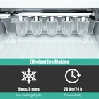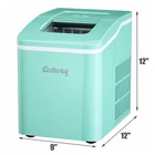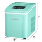 Costway Portable Ice Maker Machine Countertop 26Lbs/24H Self-cleaning w/ Scoop Product details The powerful countertop ice maker with self-cleaning function is the perfect choice for you in summer! This countertop ice maker can produce 9 pcs bullet-shaped ice in 8 minutes and up to 26 lbs ice in 24 hrs, greatly satisfying your daily ice requirements. The capacity of the water tank is 1.6 liter. And the simple control panel with self-cleaning function provides great convenience. Designed with transparent lid, this portable ice maker allows you to view the progress easily. And it will not disturb you with 45 dB low noise. Featuring with portable yet compact design, this premium ice maker machine with ETL certification is perfect for home, office, party and bar.To enjoy the ice at its freshest, please use up ice in the basket or put it in the fridge to avoid melting around. Note:The indicator light of the green one is green, others are red. Feature Produces 9 chewable bullet-shaped ice in 8 minutes for fast ice-making Makes 26 lbs of ice each day, meeting your daily ice needs Self cleaning function maker it convenient to clean and maintain Simple control panel for easy operation Food grade material, harmless to human body Checks the progress and amount of ice easily with transparent lid Will not disturb your entertainment with 45dB low noise operation Convenient to carry and store with portable and compact design Suitable for home, office, party and bar Takes out the ice with ease thanks to included scoop and removable basket ETL and UL certificated for safer use Specification Color: Green Material: ABS, cooper Overall dimension: 12'' x 9'' x 12'' (L x W x H) Voltage: 120V/60 HZ Capacity of water tank: 1.6 liter Weight capacity of basket: 1.3 lbs Operating cycle: 8 Mins Amount of ice per cycle: 9 pcs Daily capacity: 26 lbs Net weight: 17 lbs Package includes: 1 x Countertop ice maker 1 x Scoop 1 x Ice Basket 1 x Instruction Efficient Ice Maker: Featuring with fast and efficient function, this portable ice maker machine only spends 8 minutes making 9 pcs delicious and chewable bullet-shaped ice, saving your time to make yummy food and drinks. And it can produce 26 lbs of ice each day to provide enough ice for you. Simple Control Panel: Equipped with easy control panel and transparent lid, this compact ice maker not only offers self-cleaning function which offers great convenience for you, but also allows you to check the progress. Quiet Operation: Coming with 45 dB low noise operation, this electric ice making machine will not disturb your daily work and activity while achieving low consumption. And the evaporators are made of pure copper with plating which are highly efficient and durable. Portable & Compact Design: Measuring with 12'' x 9'' x 12'' (L x W x H) in dimension, this countertop ice maker machine with 70'' power cord is suitable for home, office, party and bar, enjoying delicious food in anywhere. And the portable and compact design allows you to carry and store with ease. Sweet Accessories: This premium ice maker includes an ice scoop and a removable basket, allowing you to take out the ice easily. And the ETL certification ensures your safety. Also, non-slip foot pads provide strong stability.