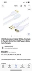 USB Extension Cable White, Costyle 2-Pack 2.0 9ft/3m USB Type A Male to A Female.