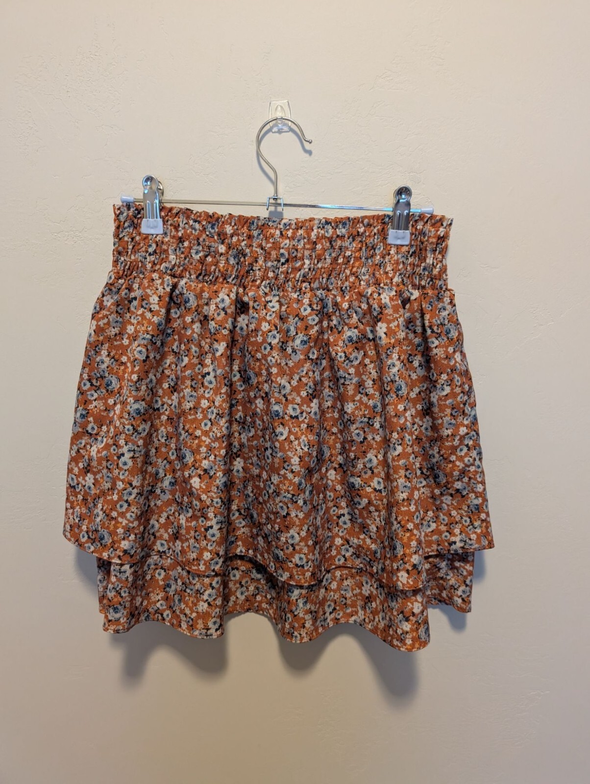 This lightweight, elastic-waist mini skirt features a charming floral print and tiered design. Its versatile and flowy style ensures all-day comfort. • Elastic waistband for comfort • Tiered design for added flair • Vibrant floral pattern • Lightweight and breathable material • Easy to care for with machine wash instructions Pre-Owned Condition (see pics for details) Measurements taken with garment laying flat Measurements are approximate: Waist: 26" Length: 16" 7-0257 .5