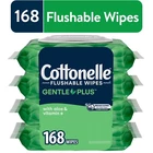 Cottonelle Gentle Plus Flushable Wipes, 4 Flip-Top Packs About this item Product details Enjoy a complete clean with the #1 septic-safe wipes brand*, Cottonelle GentlePlus Flushable Wet Wipes. These adult wet wipes offer 4-in-1 Sensitive Skincare that cleans, comforts, refreshes, and absorbs with every wipe. Cottonelle GentlePlus is when skincare meets flushable wipe, and is made with 95% pure water and aloe & vitamin E. They're 2x more gentle than the leading dry value brand and wash away odor-causing mess. Plus, Cottonelle GentlePlus Wet Wipes are 100% flushable, septic-safe, and plumber-approved. Each flip-top pack has 42 flushable wet wipes per pack with pull-apart sheets for easy dispensing. Cottonelle is FSC certified, supporting responsible forestry and only uses fibers that are 100% plant-based. For more ways to feel clean, pair Cottonelle flushable wipes with Cottonelle toilet paper. Together, Cottonelle Ripples clean better***. Keep Cottonelle stocked and order online with delivery. (*among national brands) (**using dry + wet vs dry alone) (***Cottonelle dry + wet vs dry leading value brand) 4 flip-top packs of Cottonelle GentlePlus Flushable Wet Wipes with Aloe & Vitamin E, 42 flushable wipes per pack (168 wipes total); Cottonelle flushable wipes packaging and product may vary Cottonelle GentlePlus wet wipes are 2x more gentle* and made with aloe & vitamin E and 95% pure water (*vs the leading dry value brand) A Complete Clean: Our Cottonelle flushable wipes for adults wash away odor-causing mess 4-in-1 Sensitive Skincare: Cottonelle wet wipes clean, comfort, refresh, and absorb so you can experience skin care in a wipe 100% Flushable: Every wet wipe is septic-safe and breaks down like toilet paper* (*begins to break up as fast as Cottonelle Ultra Clean and has same break up after 30 minutes) Cottonelle wipes are FSC certified, supporting responsible forestry and only uses fibers that are 100% plant-based Use Cottonelle flushable wipes and Cottonelle toilet paper together for Cottonelle Ripples that clean better** (**Cottonelle dry + wet vs dry leading value brand) Order Cottonelle disposable wipes online with delivery to your door or pickup in store Instructions Close Pouch Firmly After Use to Retain Moisture **WARNING: TO AVOID DANGER OF SUFFOCATION, KEEP THIS BAG AWAY FROM BABIES AND CHILDREN. Inactive Ingredients Water/Aqua Sodium Chloride Butoxy PEG-4 PG-Amodimethicone Polysorbate 20 Aloe Barbadensis Leaf Juice Caprylyl Glycol Sodium Benzoate Coco-Betaine Malic Acid Fragrance Sodium Citrate Tocopheryl Acetate Ingredients Water, Sodium Chloride, Butoxy PEG-4 PG-Amodimethicone, Polysorbate 20, Aloe Barbadensis Leaf Juice, Caprylyl Glycol, Sodium Benzoate, Coco-Betaine, Malic Acid, Fragrance, Sodium Citrate, Tocopheryl Acetate Contact us We can be contacted at any time through eBay messages if you have any questions, comments or product requests. We will respond to you within 24 hours and do our best to help you out! We encourage our customers to contact us with any questions or concerns! We'd like to be sure you are completely satisfied with your purchase. Shipping We offer FREE shipping on all orders! We ship within 7 business days of payment, usually sooner. We use a selection of shipping services such as UPS, FedEx, USPS etc. We only ship to the lower 48 states, no APO/FPO addresses or PO Boxes allowed. Local pickups and combined shipping options are not provided at this time. Feedback Customer satisfaction is very important to us. If you have any problem with your order, please contact us and we will do our best to make you satisfied. Thank you for shopping at our store