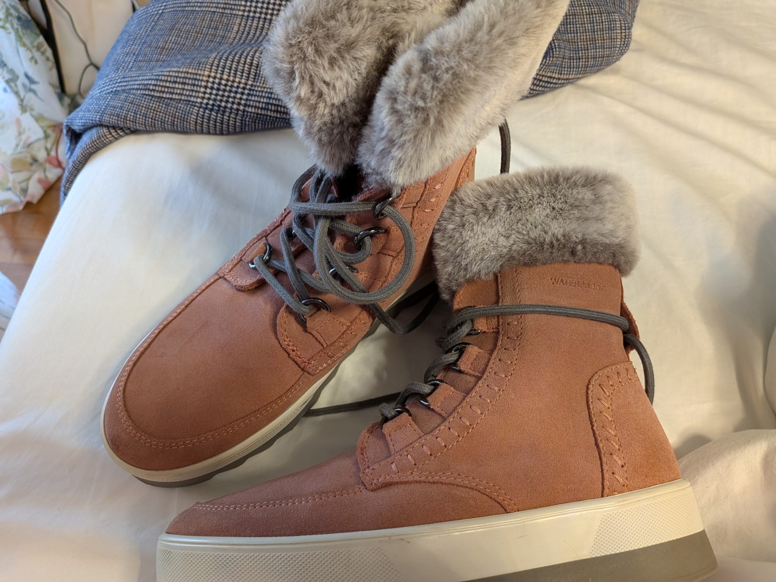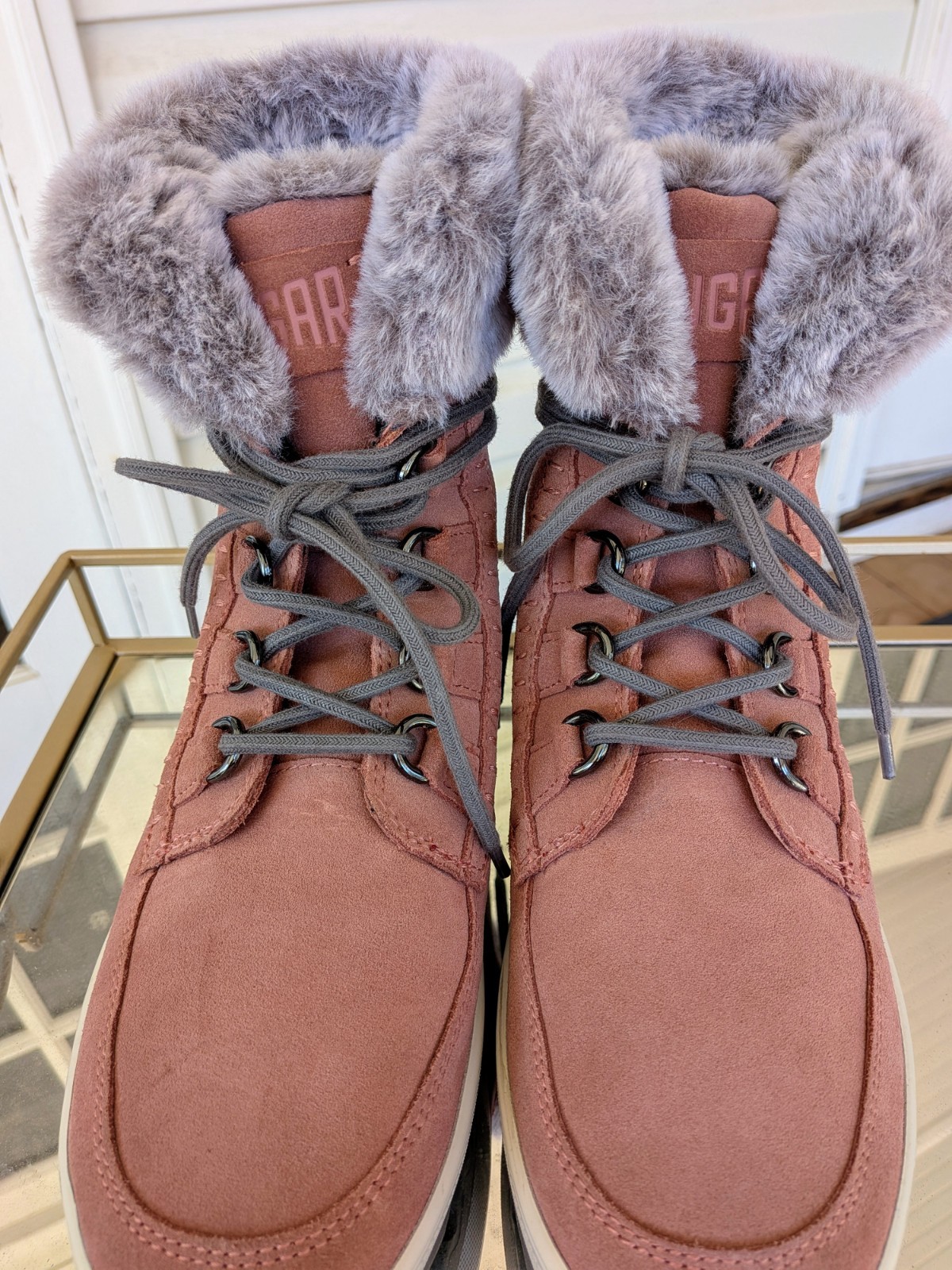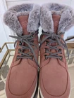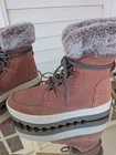 These Cougar pink suede fur lined winter boots in size 7 are perfect for keeping your feet warm and stylish during the winter season. With a round toe shape and snow boot style, they are suitable for casual occasions. The pink color adds a fun pop to your outfit, while the suede upper material and lined feature provide comfort and coziness. These boots are a great addition to any woman's winter wardrobe.