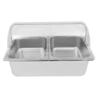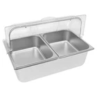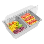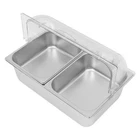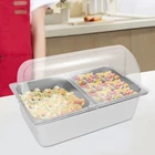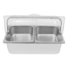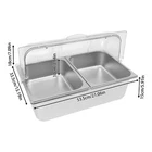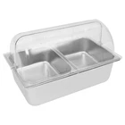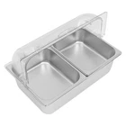 Countertop Food Serving Display Container Stainless Steel Food Containers Description Description This food serving container is made of high-quality 201 stainless steel, durable, and easy to clean. Unique double compartment design can place different fruits separately, keeping the original flavor, healthy and hygienic. The flip lid design can effectively prevent dust and maintain freshness, retaining the flavor of the fruit, whether, for daily use at home or with guests, it can show your taste and intention! Key Features Excellent Materials: Made of high-quality 201 stainless steel, HDPE, and PC, it is waterproof, corrosion-resistant. and not easy to rust, which ensures long service life and food safety. Flip Lid Design: Its clear PC lid can be flipped and fixed at 90° to keep it open for a long time, making it easy to access the items at any time. It is also removable for easy cleaning. Closing the lid can also effectively prevent dust, insects, and un necessary evaporation. Powerful Function: Its bottom layer is designed to hold ice bags to keep fruits fresh, making it an ideal choice for preserving perishable food items Scientific Compartments: Two compartments can place different kinds of fruits separately to avoid cascading flavors and keep the original taste of each fruit. Stylish Appearance: Simple and modern silver color appearance and clear lid fit for all kinds of home decorating styles, not only a practical food container but also a decorative piece on the table. Easy Cleaning: The smooth stainless steel surface and removable design make it easy for you to quickly wipe up stains with a rag (not included), you can also put the container, spoon, and clamp into the dishwasher, saving time and labor. User Friendly: This product includes a food serving container with 2 spoons, 2 clamps, and 3 water bags, which meet your actual usage needs and reduce the need to buy additional accessories. Large Capacity: Two 3.94-inch deep compartments can store a large amount of fruits, vegetables, snacks, as well as other foods to meet your family's daily use and party requirements. Customer Service: We aim to provide quality products and services. If you have any problems, please feel free to contact us. We will reply and solve the problem for you as soon as possible. Details Snap Fastening: It can firmly fix the lid to the edge of the container, ensuring smoother opening and closing. Convenient Handle: It facilitates you and your guests to open the lid more quickly and conveniently. Durable Water Bags: They are made of premium HDPE with a long service life and will not easily break. Rounded Corners: Smooth, burr-free corners take better care of your hands when installing and cleaning, and add to the overall design. Application It can be used to hold fruits, vegetables, snacks, desserts, and other foods for family picnics, bu ffets, gatherings, parties, hote ls, shopping malls, and other occasions. How to Install Place the stainless steel compartment into the container. Install the lid. Secure the lid with the clips. Complete the assembly. How to Use Place the water bag in the freezer to freeze. Take out the ice bag and put it in the bottom layer. Put the compartment with food on it. Put on the lid and you can enjoy fresh fruit. Specification Material: 201 Stainless Steel, HDPE, PC Color: Silver, Clear Style: Modern Shape: Rectangular Dishwasher Safe: Yes Mount Type: Desktop Assembly Required: Yes Number of Compartments : 2 Number of Spoons: 2 Number of Clamps: 2 Number of Water Bags: 3 Closure Type: Flip Top Flip Top Height: 18cm/7.09 in Compartment Depth: 10cm/3.94in Container Size: 53.5*33.5*15cm/21.06*13.19*5.91 in Package Size: 60*40*21cm/23.6*15.7*8.3in Net Weight: 3.9kg/8.6lbs Gross Weight: 4.8kg/10.6lbs Package Included 1* Food Serving Container 2* Spoons 2* Clamps 3* Water Bags Notes Please check the style and size before purchasing. Please note that this product does not contain any food inside. Please note that the lid is not suitable for cleaning inside the dishwasher. Please fill the water bag with water and put it in the refrigerator to freeze before use. Please allow the slight color difference caused by the shooting light and 1-3cm error due to manual measurement and make sure you do not mind before ordering. Payment Delivery details Terms of sales About us Contact us Payment We accept ebay payment 。 Fees such as import duties, taxes are not included in the item price or shipping costs. These charges are the buyer's responsibility. Delivery details Shipping: 2-9 working days to: USA Terms of sales We maintain high standards of excellence and strive for hundred percent customer satisfaction. Feedback is very important to us. We hope that you contact us immediately before you give neutral or negative feedback, so that we can address your concerns. It is impossible to address issues if we do not know about them! About us Your satis faction is our ultimate goal. We work hard to earn your trust and future business. Our certified technicians have tested each item before shipping. The unit comes with 1 year limited warranty on all manufacturing defects. a) If you receive a defective item, you may return it or ask for a discount. Please contact us within 14 days after you receive the package. b) What you returned must be intact and in its original packaging as re? u. Customer is responsible for shipping costs of the returned item. c) We will cover the cost of shipping back t with the shipping rate indicated in the registration page. We will send you a new unit or refund the full payment you paid. Thank you. Contact us Business Hour Business Hour: Monday To Friday: 8:30 AM to 5:00 PM (Beijing China time) Due to time zones, our reply to your questions may not be immediately. But within above working time, we will reply your email within 24 hours. If it's non-workdays, please kindly be patient and wait till Monday. Please contact us with ebay message. Please feel free to contact us if y