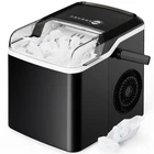 ➤Fast Ice Making: In just 6 minutes, this ice maker can make 9 perfectly formed bullet ice cubes. The 1.2L water tank can be filled as needed to make a maximum of 26 lbs of ice in 24 hours. Enjoy fresh ice whenever you need it without having to buy bagged ice. ➤Smart & Simple Operation: The indicator on the countertop ice machine alerts you when the basket is full and reminds you when to add water if the ice machine is running low. Choose from two sizes of ice for flexibility when making cocktails or refreshing drinks. ➤Compact & Portable: This portable ice maker measures only 11.93″ x 9.8″ x 11.1″ in size and weighs 13 lbs. The ice maker is designed with a flip-up handle so you can easily take it to holiday parties, work events, or even in your RV to enjoy fresh ice wherever you go. ➤Durable & Quiet Design: The interior of this small ice maker is constructed from high-quality food-grade PP material, ensuring durability and long-lasting performance.The ice maker operates at a low noise level of around 45 dB so that it doesn’t disturb your living space. ➤Self-Cleaning Function: Keep your ice tasting fresh using the self-cleaning function. Simply remove the basket, add water, then hold the Select button to choose self-cleaning mode. Press the On/Off button to start the 5-minute process, then drain the ice machine over a sink to complete.