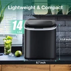 Countertop Ice Maker, Fast Ice Making in 6 Mins, 26.5lbs/24Hrs 9 Bullet Ice, Portable Ice Maker Machine with Self-Cleaning, Ice Scoop and Basket, Bullet-Shaped Ice Maker for Home/Kitchen/Office/Party Product Features: -High-Efficiency Ice Making Machine: 6 Mins Fast Ice Making -Black Ice Maker with Portable Handle -Smart & Simple Operation Ice Cube Maker -The portable ice maker countertop is equipped with new condensing technology and a silent fan -The ice maker has advanced infrared detection technology What’s in the box? -Countertop Ice Maker*1 -Ice Basket*1 -Ice Scoop*1 -Handle*1 -Ice Bag*2 -User Manual*1 Automatic Self-cleaning Program: Plug in the unit and press the “ON/OFF” button on the control panel for more than 5 seconds. It takes 30 minutes to enter the self-cleaning program. The "Ice full, Add Water" indicator flashes during the cleaning. After cleaning, drain the water from the inner tank through the drainage outlet at the bottom of the portable ice maker. Ice Making in 6 Minutes: This ice maker produces 9 ice cubes in 6 minutes and up to 26.5 lbs in 24 hours. Perfect for home parties, it ensures your drinks stay cool. Invite family and friends for a refreshing ice drink time Smart & Simple Operation: The countertop ice maker alerts you when the basket is full or water is low. Just add water and turn on the switch to start making ice. The transparent window lets you watch the ice being made Condensing Fan and Low Noise: Equipped with new condensing technology and a silent fan, this ice machine operates at less than 45 dB, ensuring it won’t disturb your home or family life Portable and Compact: Weighing 14.74 lbs and measuring 8.7*11.6*11.4 inches, this portable ice maker is easy to carry with its handle, great for camping, patio parties, or outdoor events Self-Cleaning Function: Our ice makers countertop have a self-cleaning function. Activate the function by holding the on/off button for 5 seconds. This feature ensures your ice is clean and fresh every time