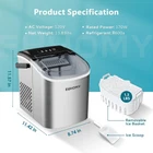 Product details: 6 Mins Ice-Making & Ultra Quieter: Our Euhomy ice maker only takes 6mins that will enjoy the first batch of fresh bullet ice. With a 1.2L water tank and powerful compressor, the portable ice maker easily makes maximum ice capacity to 26lbs ice per day and holds up to 1.3lbs ice at a time. Also, our ice maker is not only excellent in refrigeration, but also at less than 45db normal noise, ensuring a comfortable and quiet environment to enjoy ice-making, similar to a working freezer Portable Design & Bullet Ice: Our ice maker comes with a sturdy handle, weighs only 13.89lbs and with compact size 11.57(L)x11.42(W)x8.74(H)in. Those features make ice maker easy to carry and perform well on any occasions like Kitchen/Home/Camping/RV/Party/Dorm. Also, the newly designed countertop ice maker produce the most popular bullet-shaped smooth ice cubes, which won't stick together easily or hurt your hands or mouth even are excellent for cold drinks, iced coffee or chew as snacks Smart Operation & Self-Cleaning: The ice maker has advanced infrared sensor. The "ICE FULL" indicator flashes remind you to take out ice to prevent overflowing when the basket is full. And it'll remind you to add water by flashing "ADD WATER". Additionlly, the compact ice maker has a one-touch auto-cleaning function. Press the “ON/OFF” for 5s after adding water to run automatic mode for 30mins. Just get a clean ice maker without washing it by yourself Brand EUHOMY Model Name ice maker Product Dimensions 11.57"D x 11.42"W x 8.74"H Capacity 26 Pounds Wattage 170 watts