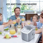 KISSAIR Portable Ice Maker: The countertop ice maker machines with intelligent displays are easy to operate and convenient. You won't be disturbed by the noise, giving you a quiet environment with this portable ice maker when it is working, because it operates at low noise levels. The ice making efficiency of our ice machines is 9/6 mins and 26 lbs/24 h. The small ice makers countertop with self-cleaning function, so you have more time to enjoy life. Model: HZB-12/H Power Power: 115V/60Hz Ice Making Current: 1.5A Ice Collecting Current: 1.8A Refrigerant: R600a 0.74Oz/21g Net Weight: 6.2Kg Manual � 1 pc Ice Basket � 1 pc Ice Scoop � 1 pc Handle � 1 pc ?FAST ICE MAKING IN 6-8 MINUTES: The ice maker utilizes a high quality compressor to produce approximately 9 blocks of ice in just 6-13 minutes. It can produce approximately 26 pounds of ice in 24 hours, giving you a fast and steady supply of fresh ice. ?COMPACT & PORTABLE: KISSAIR electric countertop ice maker measures 11.22"*8.66"*11.73" with carrying handle, easy to transport and use in various occasions. Whether you're in the kitchen or at a party or get-together, it will provide you with the ice you need. ?SELF-CLEANING FUNCTION: The ice maker has an advanced self-cleaning function that saves you time and effort in keeping it clean. Press and hold the "On/Off" button for 5 seconds after adding water to activate the self-cleaning mode and ensure clean ice is served. ?BULLET SHAPED ICE: The ice maker produces stylish and attractive bullet shaped ice cubes that don't stick together easily. These ice cubes are perfect for iced coffee, cold drinks, frozen foods and even first aid. In addition, you can eat or chew the ice cubes to enjoy the refreshing sensation. ?Food Grade Healthy Material: Providing healthy and safe food to customers is an important issue. KISSAIR ice maker is made of food grade material, which can effectively take care of your health. Our service tenet is customer first!