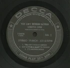 artist Loretta Lynn label Decca 34418 title You Ain't Woman Enough cover condition Mint- no seam splits, lite ring wear record condition VG++ Grading scale: NM / VG++ / VG+ / VG / VG- / G+ / Poor I combine S&H on multiple orders and have no problem starting a stack if you wish to combine S&H for future orders. Please view my other listings for more desirable 45's, 78's and LP's in the country, bluegrass, gospel, rockabilly, rock & roll, teen, instrumental genres.
