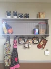 THIS COUNTRY CUPBOARD WALL SHELF WILL LOOK GREAT IN YOUR KITCHEN OR HOME. IT'S BEAUTIFUL CRAFTSMANSHIP WILL ADD A UNIQUE TOUCH TO YOUR HOME. BUILT TO LAST A LIFETIME. SOLID PINE WITH BEADBOARD BACK. THE UNIT IS 46 INCHES OVERALL WIDE. IT HAS A 6 INCH DEEP UPPER SHELF AND A 10.25 INCH DEEP LOWER SHELF AND IS 19.5 INCHES OVERALL TALL. THE DISTANCE SHELF TO SHELF IS 14 INCHES TALL. THE SHELF DISPLAY AREA IS 42.5" WIDE. THIS IS A GREAT ITEM TO PLACE THOSE LARGE FAMILY SIZE CEREAL BOXES AND SNACKS. IT COMES WITH MOUNTING BRACKETS. . IT HAS 6 SHAKER PEGS TO HANG YOUR ITEMS FROM, AND THIS PIECE IS SHOWN IN Gray BUT CAN BE FINISHED IN COLOR OF YOUR CHOICE, jUST ASK! **** IMPORTANT INFORMATION**** Paint Colors – White, Heirloom White, Black, Gray, Espresso, Nutmeg, Navy, Slate Blue, Colonial Red (bright red) , Wine Red, Hunter Green, Moss Green, Squash, Sunshine Stain Colors – Natural, Golden Oak, Provincial, Red Oak, Puritan Pine, Ipswich Pine, Sedona Red, Colonial Maple, Special Walnut, Red Mahogany, Early American, Gunstock, Red Chestnut, English Chestnut, Cherry, Golden Pecan, Pickled Oak, Driftwood, Dark Walnut, Ebony, Weathered Oak, Classic Gray Please choose a color when you checkout and add a note. If no color is listed item will be sent in Gray. If you would like to customize your item (size, material, hooks, and different color) please email us! THIS ITEM IS NOT MADE UNTIL ORDERD Build and Ship Time: Current build time is estimated at 2-4 weeks. We do try to have items shipped out within 15 business days but this time fluctuates depending on the current work load. We apologize for any inconvenience this may cause. If you need your item by a specific date please email us and let us know as we will do our very best to get it to you by the date. PLEASE NOTE: This item is built custom once it is ordered. The item you are purchasing is a handcrafted original. It may not appear exactly as shown. Additional time may be required depending on any custom changes you have made. Additional items shown in the picture are not included but some are available for sale, just send an email inquiring on an item and I can let you know. If you have any questions please feel free to email us. All of our items are one of a kind as each item is handcrafted individually here in our shop in Ohio. Please shop our other items