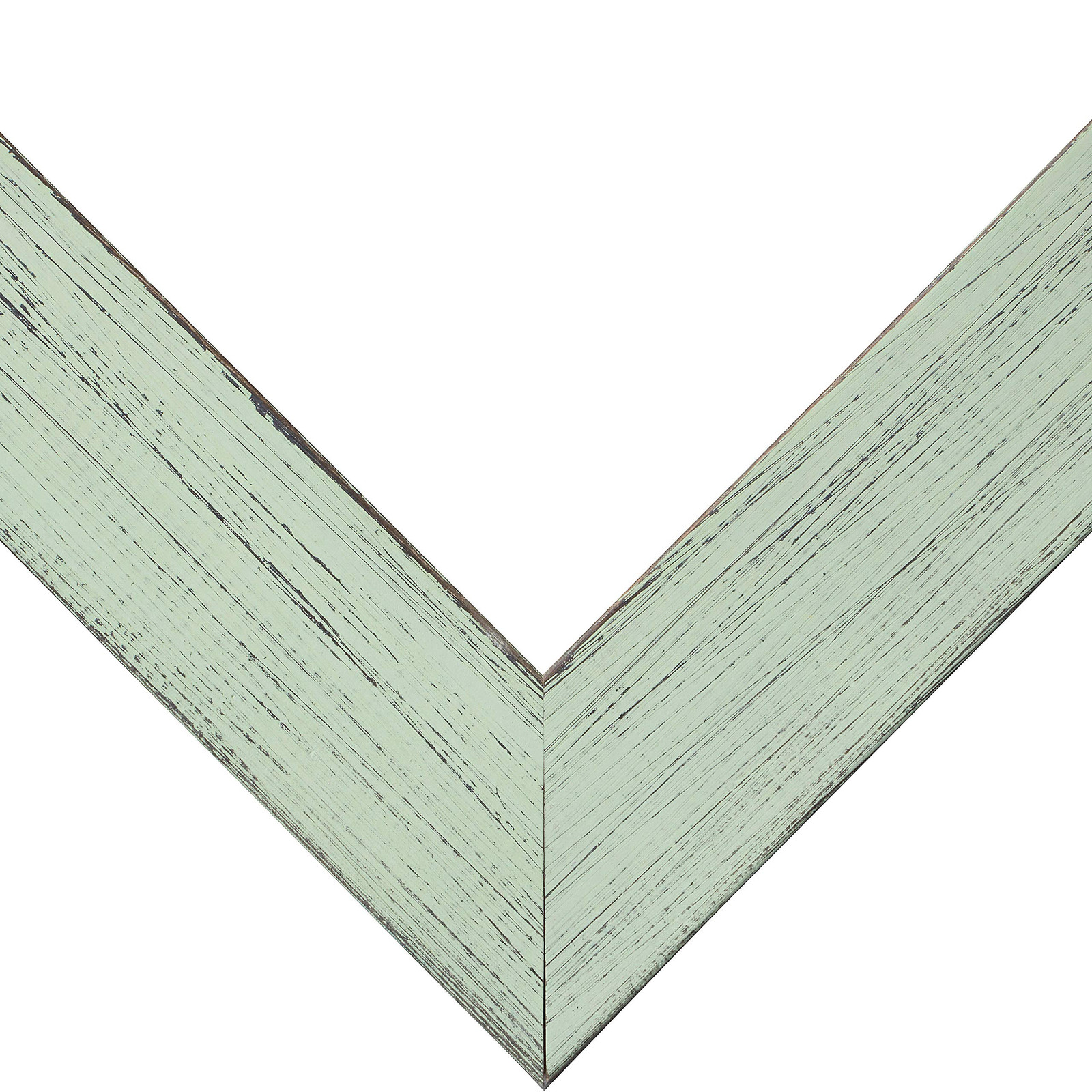 Rustic style; weathered light green with visible wood grain; painted finish **IMPORTANT** THIS IS A NATURAL WOOD PRODUCT. WE CANNOT CONTROL VARIATIONS IN COLOR OR GRAIN PATTERN. Frame includes: glass, rigid black backing and pre-attached stamped hanging hardware Frame holds a 5 by 7-Inch photo/print/poster (viewable area reduced by .25" on each side due to frame lip) Frame moulding is 1.5 inches wide; solid wood construction Frame is designed for WALL HANGING only (hanging hardware allows for portrait or landscape orientation)