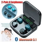 This Couple Bluetooth Headsets Earphones Wireless Earbuds,You can use 4 earphones at the same time with two phones(one pair earbuds use with one phone). When 1 pair of earphones power off, you can use the other pair immediately. Feature: 48h Playing Time & High Sound Quality The wireless earbuds come with a 2000mAh charging box, it can supply total 48 hours play times for earbuds. The bluetooth earbuds will give you excellent sound environment. Outstanding Stereo Sound Quality The Bluetooth earphones will ensure that you don’t miss any part or component of your music. And the sound is very clear without any noise because of noise cancellation technology. Automatic Pairing & Bluetooth Connection When take off the wireless earphones from charging box, it will automatic power on , and will automatic pairing the each other, there will have noticed voice "Pairing". After two earbuds pairing success, then can use cellphone bluetooth to connect earbuds. After first thosm bluetooth connection, then earbuds will automactically connect with bluetooth after take off the charging box. Touch Control& Multiple Functions This wireless earphone is very light that you can not feel the weight when wear it. The operation of earbuds is very simple by Touch control, you can Play or Pause by touch earbud 1 time, Answer or Shut off the call by touch 1 time, Next song by touch 2 times right earbud, previous song by touch 2 times left earbud, Power On/Off by take it from charging box or take in it. Compatible Model: Universal Compatible with ALL Bluetooth-enabled mobile phones, tablet, notebook.etc. Specification: --Type: Bluetooth V5.1 Earphones Wireless Earbuds --Microphone Type: Built-in --Voice Prompt: English support --Working Distance: 10 meters --Battery Capacity of Earbuds: 50mAh --Battery Capacity of Charging Box: 2000mAh --Auto On: Support --Automatic Pairing: Support --Charging Time: Earphones: 40minutes, Charging Box: 1-2 Hours --Standby Time: 280 hours --Talk Time: about 5 hours --Music Time: about 5 hours (up to a volume of 70%) --Material: ABS+PC Plastic --Earphone Color:1 Pair Black & 1 Pair Green Package Included: 4* Bluetooth Earbuds Earphones(2 Pairs) 6* Replacement Earcups 1* Charging Cable 1* Charging Box 1* User's Manual