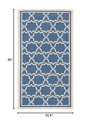 's Courtyard Collection is inspired by timeless designs crafted with the softest polypropylene available. This rug is crafted using a power-loomed construction and features a main accent color of blue. Perfect for any backyard, patio, deck or poolside, this rug will instantly turn your outdoor area into a resort-style entertaining space. Finely crafted for seasons in the sun and years of open-air gatherings, the Courtyard rug instantly elevates any interior or exterior décor to a space of visual inspiration. More than a decorative enhancement, this rug is both and -ant to ensure carefree maintenance. With its style, practicality, and transitional decorating options, this rug extends an open invitation to gather and may just spark impromptu parties. Primary Color: Blue Pile Height: 0.25 inches Material: Polypropylene Style: Contemporary Construction: Power-loomed Rug Type: Indoor/Outdoor Feature: Latex Free Rug Dimensions: 2'7" x 5' [STAIN, WEATHER, & UV-]: Expertly machine-woven from enhanced synthetic durable fibers that are stain, weather, and UV- and have a non-shedding 0.25-inch thick pile [KID & PET-FRIENDLY]: Safe for everyday indoor or outdoor high foot traffic and areas more prone to life’s unpredictable messes from kid or pet activity [TRENDY STYLE]: Design works beautifully in any room, including the patio, deck, kitchen, backyard, dining room, mudroom, playroom, living room, or entryway [EASY MAINTENANCE & DURABLE]: -free cleaning includes regular vacuuming, and rinsing with a garden hose with soapy water and air drying; When not in use for outdoors, we recommend storing away Product Note:Rugs may contain temporary creases upon arrival, allow time for creases to flatten and settle [TRUSTED BRAND]: has been a trusted brand and leader in home furnishings for over 100 years, using their expertise in crafting trendy high-quality designs; Begin your rug search with and explore over 100,000 products today