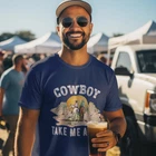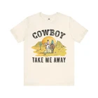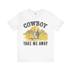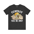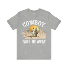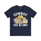 "COWBOY" Unisex Short Sleeve T-Shirt: Saddle up and embrace the rugged charm of the Wild West with our "COWBOY" unisex short sleeve t-shirt. Crafted from premium cotton fabric, this shirt offers a soft and comfortable fit suitable for all adventures, whether you're riding the range or hitting the city streets. The bold "COWBOY" print across the chest adds a touch of Western flair and invokes the spirit of freedom and adventure. Overview: This classic unisex jersey short sleeve tee fits like a well-loved favorite. Soft cotton and quality print make users fall in love with it over and over again. These t-shirts have-ribbed knit collars to bolster shaping. The shoulders are tapered for a better fit over time. Dual side seams hold the garment's shape for longer. Fabric: Made with 100% Airlume combed and ring-spun cotton, a lightweight fabric (4.2 oz/yd² (142 g/m²)) that is easy to layer, breathable. Perfect for active and leisure wear. Fit: The retail fit that is perfect for casual and semi-formal settings. The crew neckline adds a classic, neat style that's perfect for accessorizing. Origin ; manufactured in the US and internationally in humane, no-sweatshop, sustainable way. Fabric blends: Ash and Heather Prism colors - 99% Airlume combed and ring-spun cotton, 1% polyester; Heather and Solid Blend colors - 52% cotton, 48% polyester; Athletic Heather and Black Heather - 90% cotton, 10% polyester.