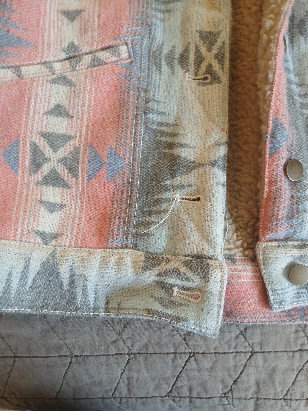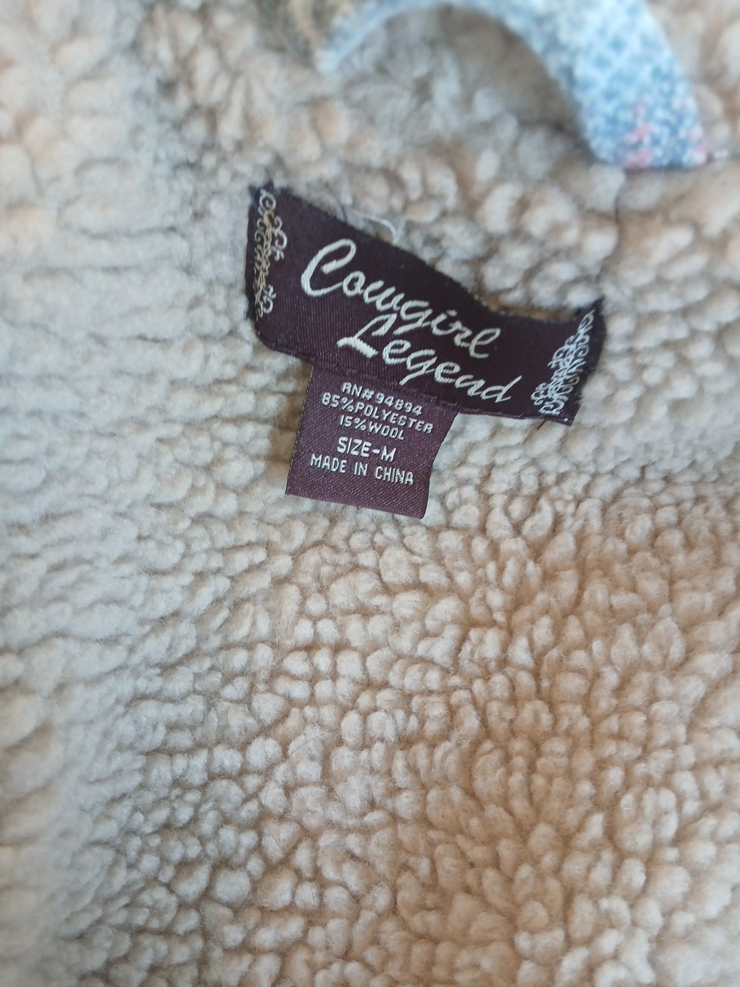 The Cowgirl Legend Jacket in women's medium size features a Southwestern Aztec design, perfect for casual, workwear, or business occasions. Made from a durable polyester wool blend outer shell and lined with a cozy wool blend, this short jacket is ideal for the winter, fall, and spring seasons. With a button closure, sherpa collar, and pockets, this basic jacket with a geometric pattern and multicolor design adds a touch of Western flair to your wardrobe. Perfect for travel, this jacket from Cowgirl Legend is a stylish and practical choice for any woman's closet. Jacket has some loose strings - see pictures